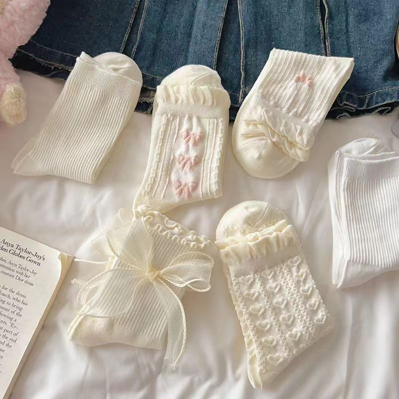 여름 여성용 흰색 양말, 귀여운 일본식 jk 양말, 레이스 메리 제인, 작은 가죽 신발, 중간 길이의 땀 흡수 양말스토어 가기