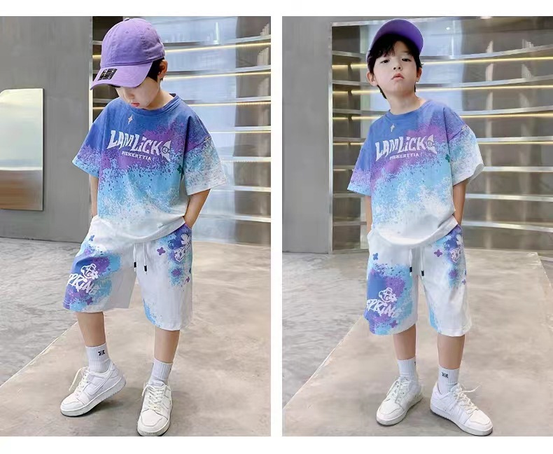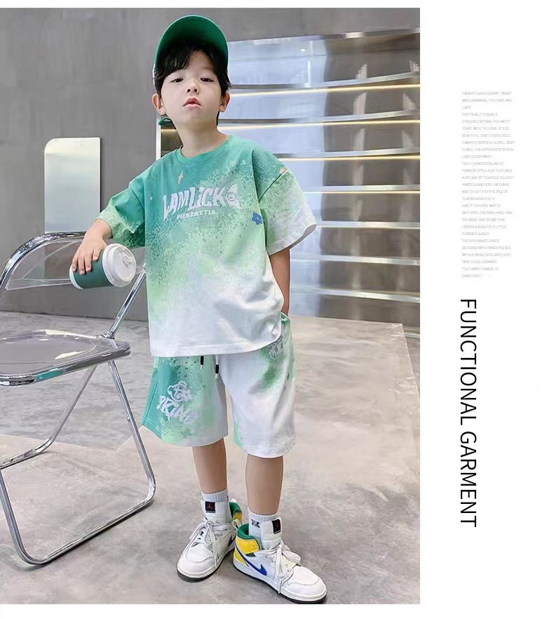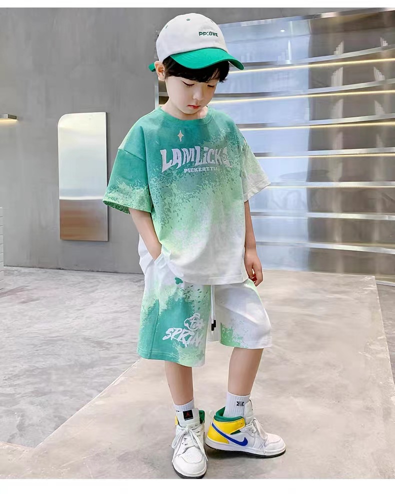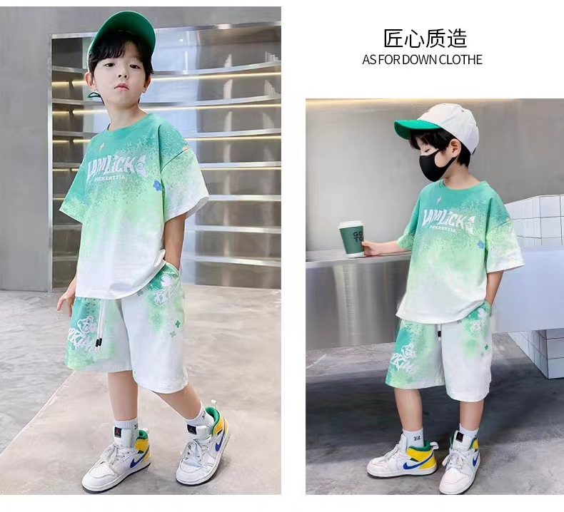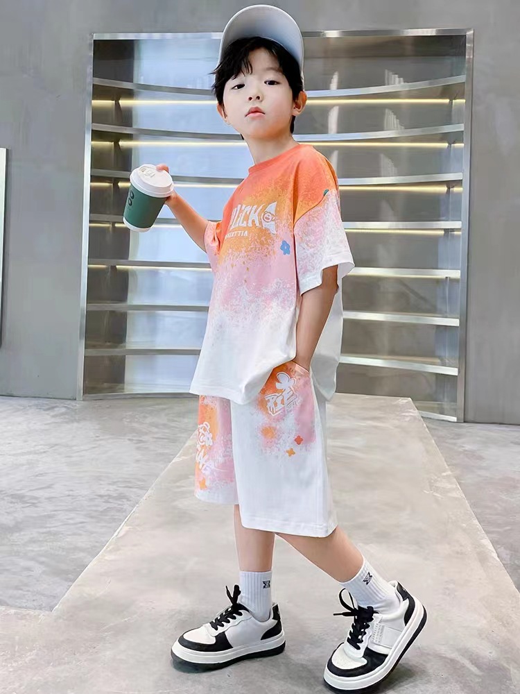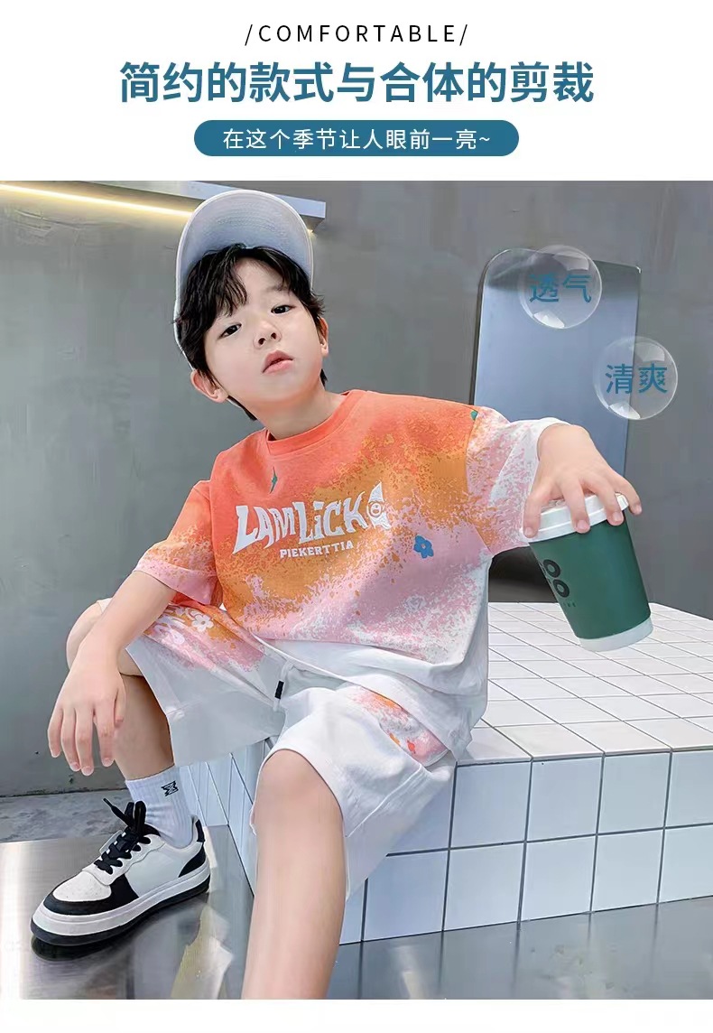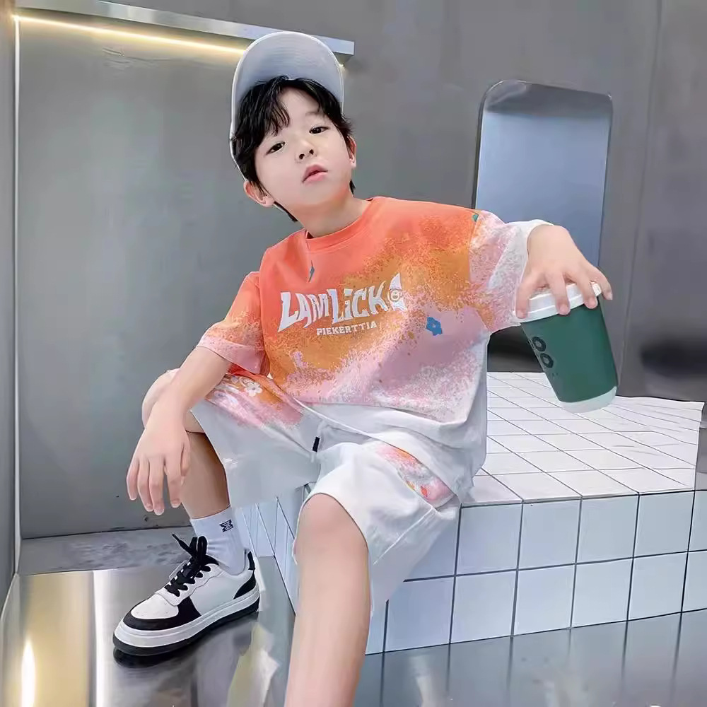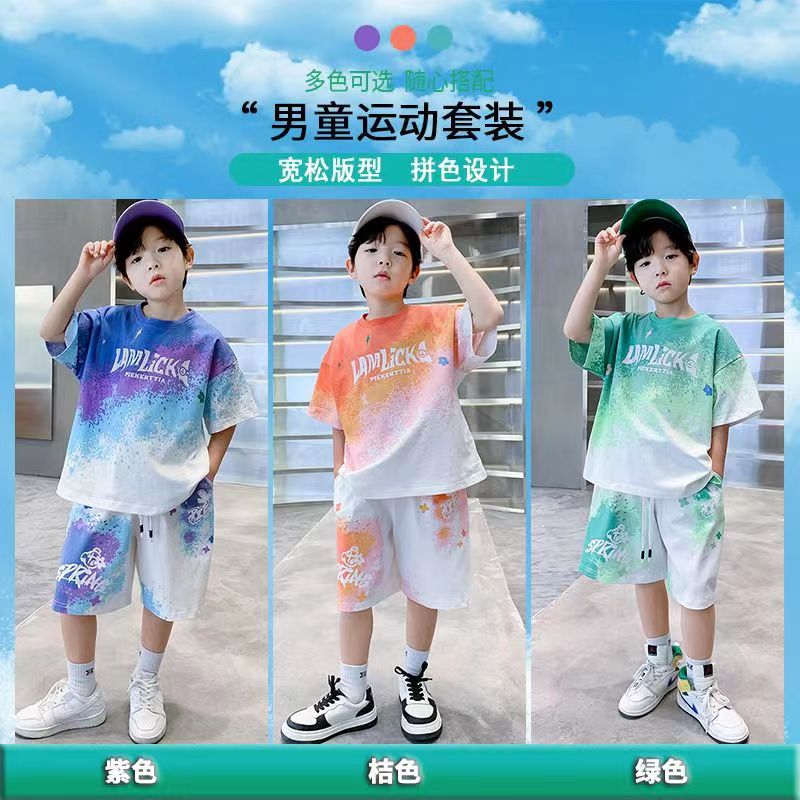 남아 여름 세트 2025 신상 속건 반팔 운동복 아동 캐주얼 여름옷 프린트 투피스 세트 그라데이션