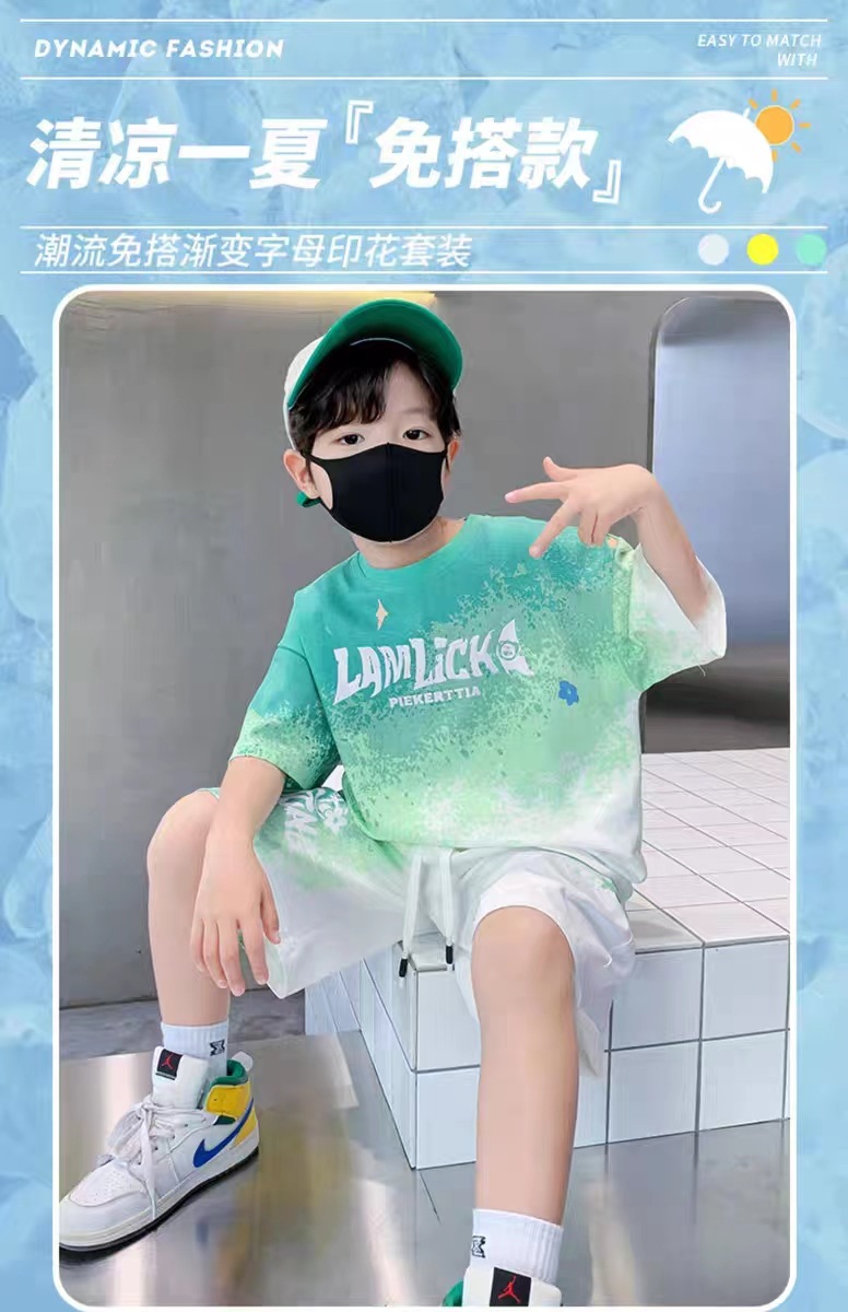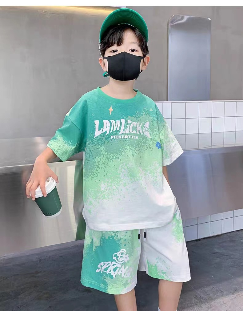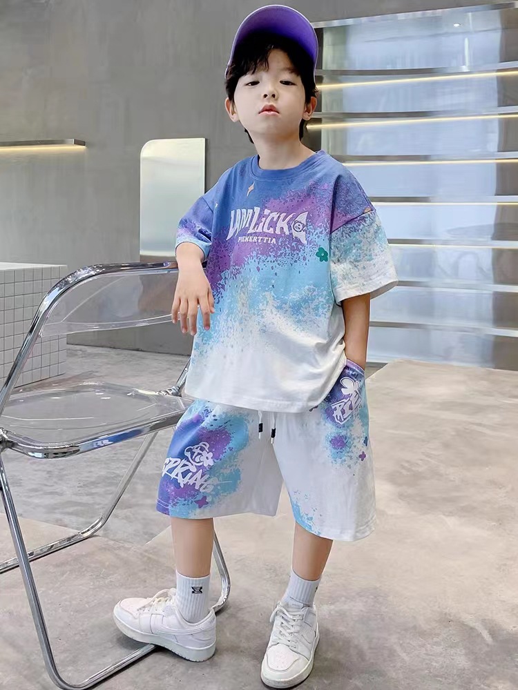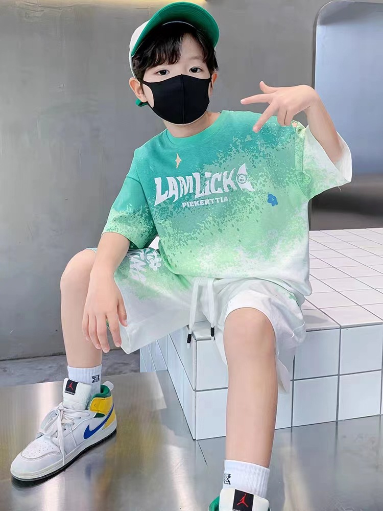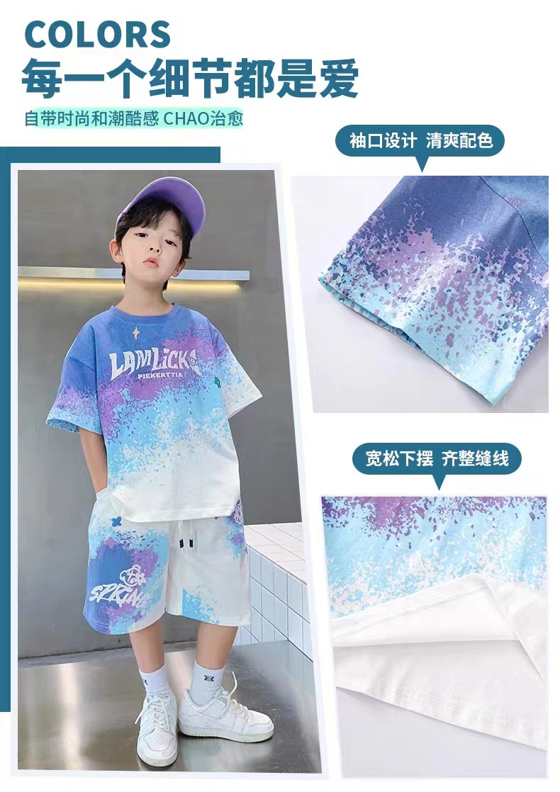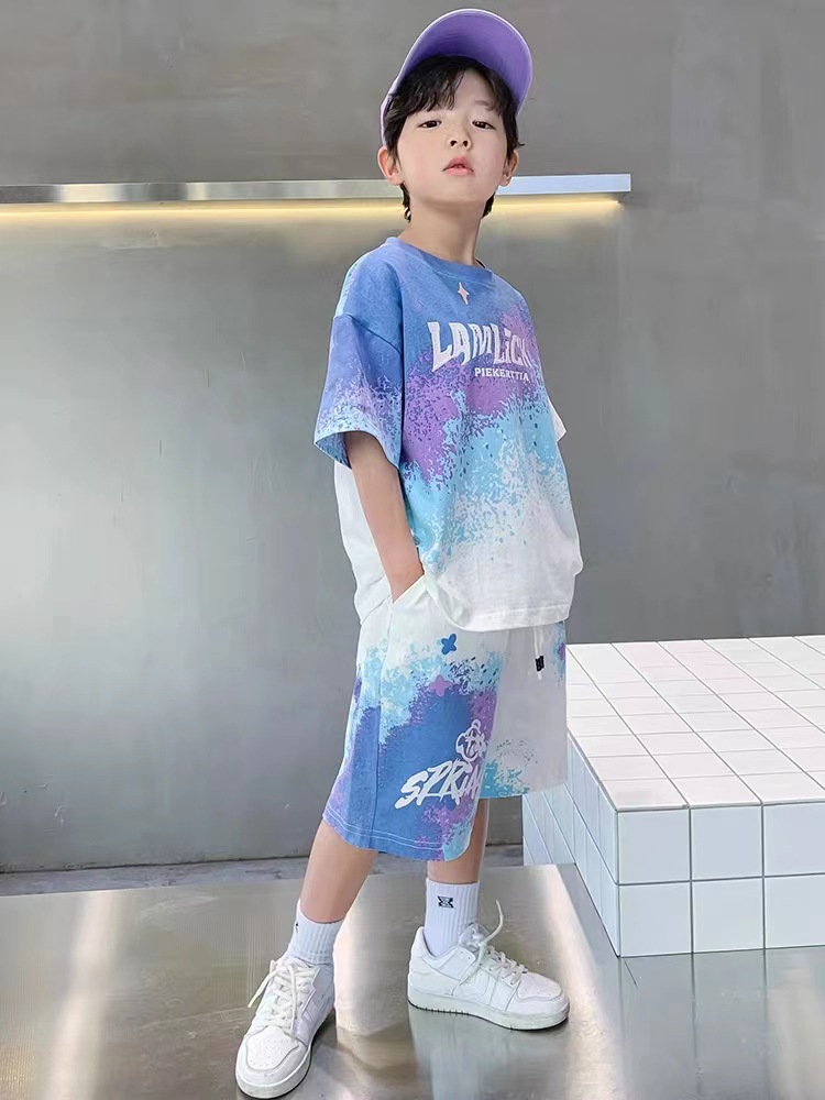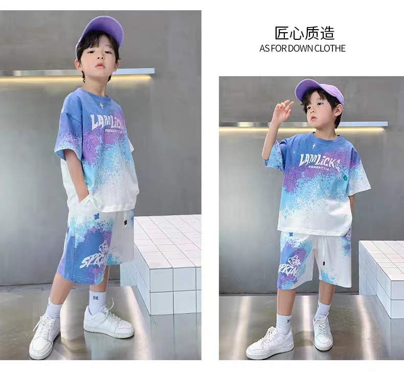 남아 여름 세트 2025 신상 속건 반팔 운동복 아동 캐주얼 여름옷 프린트 투피스 세트 그라데이션