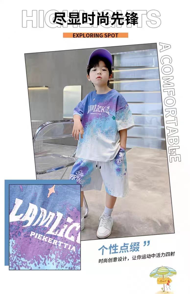 남아 여름 세트 2025 신상 속건 반팔 운동복 아동 캐주얼 여름옷 프린트 투피스 세트 그라데이션스토어 가기