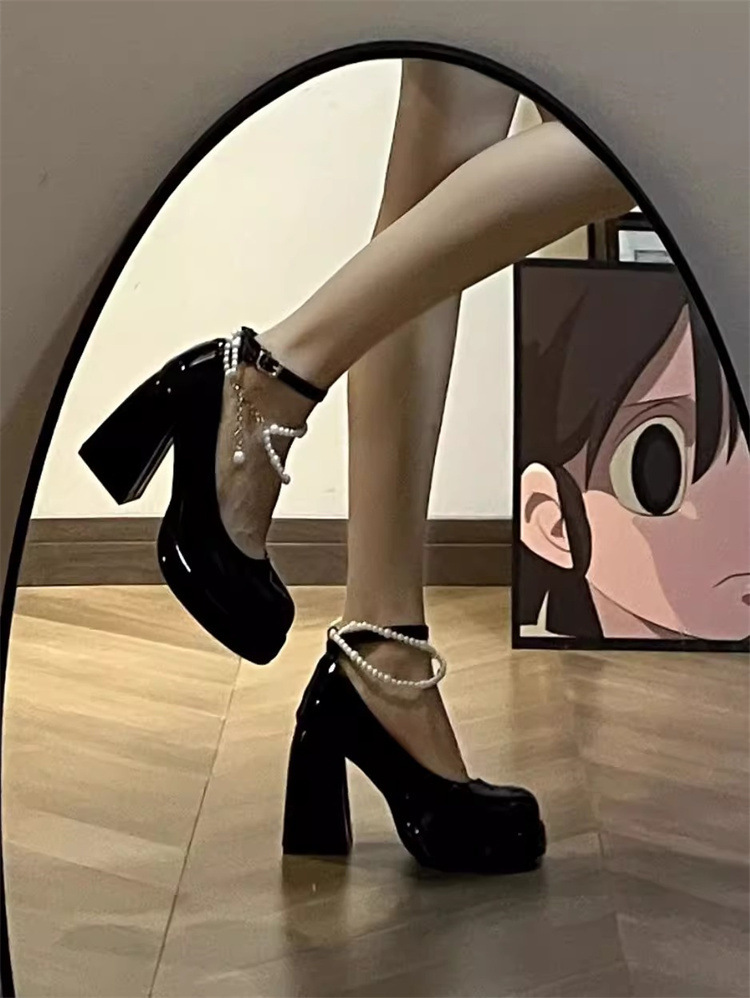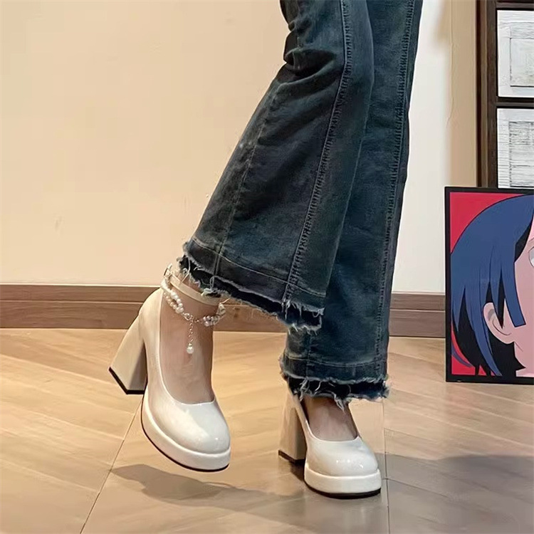 2024 봄과 가을 프랑스 스타일 요정 스타일 플랫폼 하이 힐 여성 메리 제인 신발 버클 청키 힐 싱글 레이어 신발스토어 가기