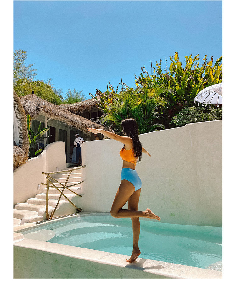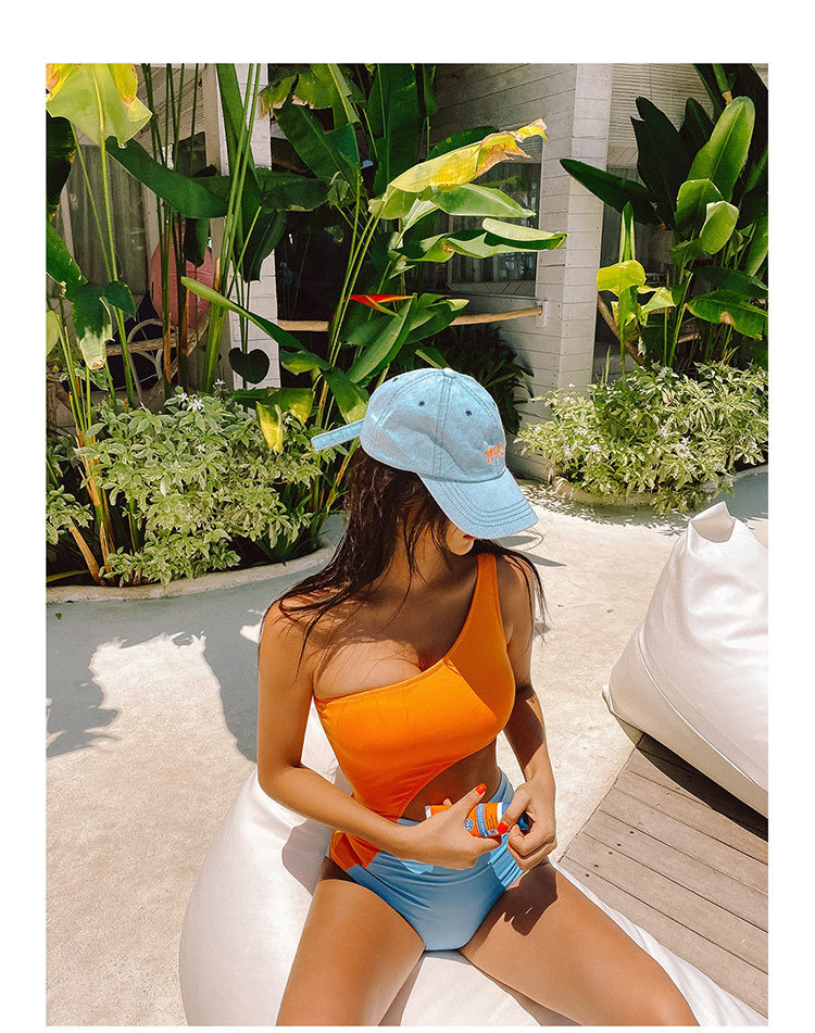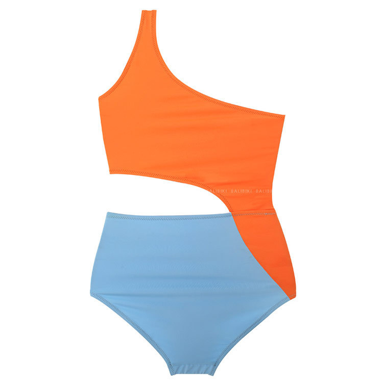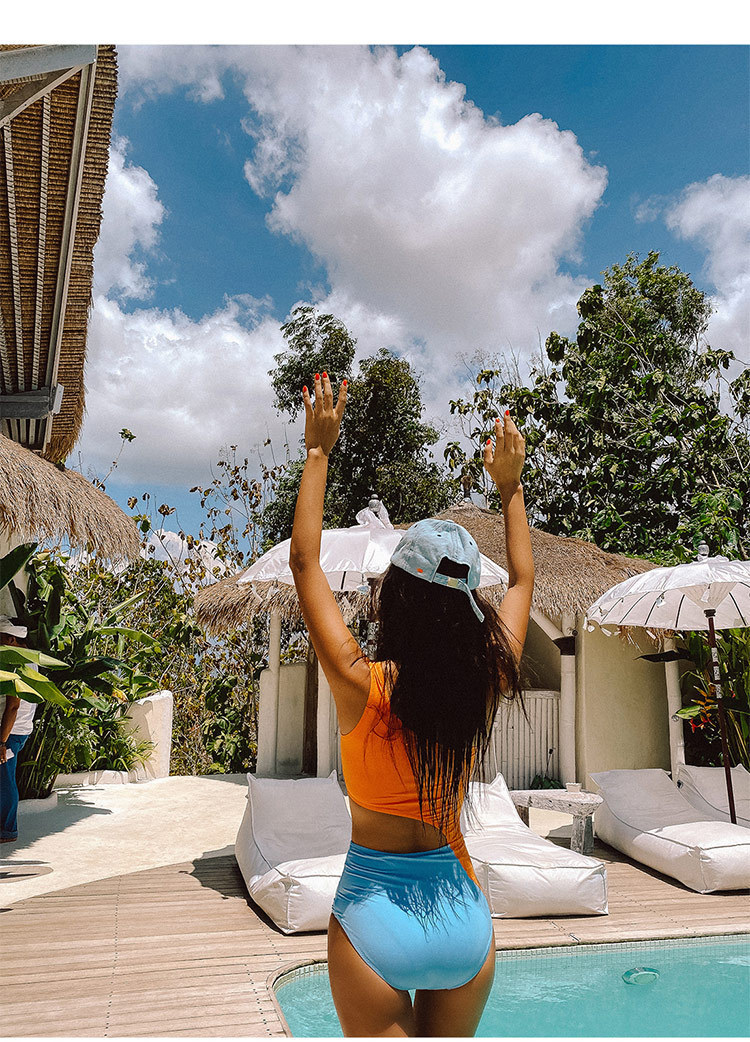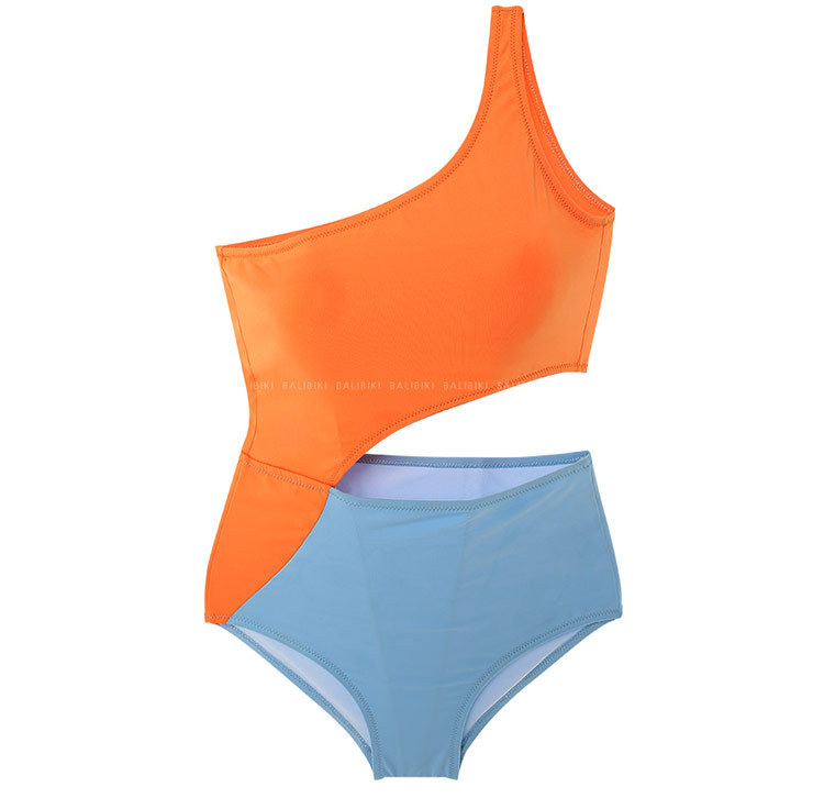 패션 컬러 매칭 원피스 수영복 여성의 섹시한 등이없는 작은 가슴은 삼각형 원피스 비키니 수영 세트 온천