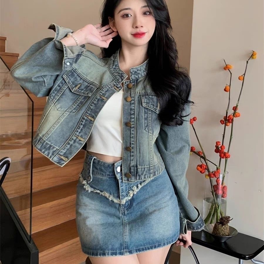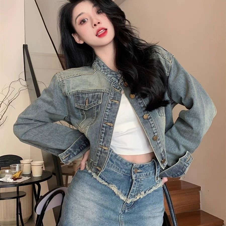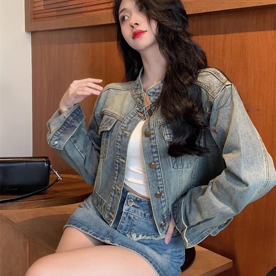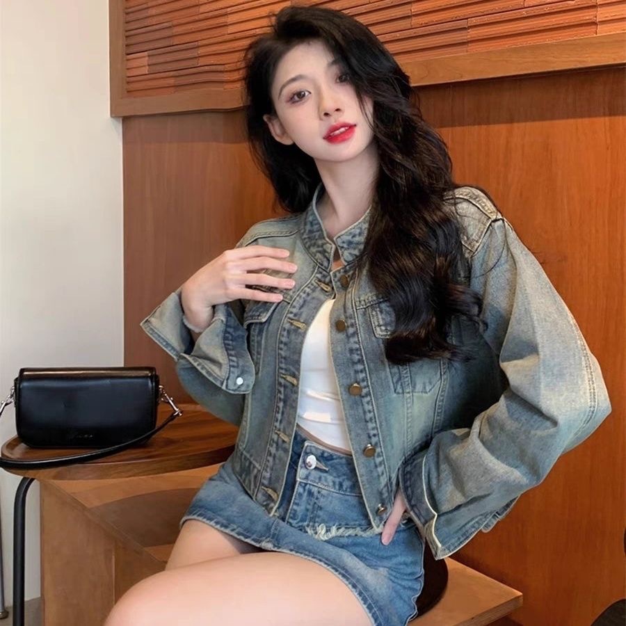 레트로 블루 스몰 사이즈 여성 데님 재킷 2026 봄 가을 신상 디자인 감각적인 패셔너블 슬림핏 여성용 트렌디 재킷스토어 가기