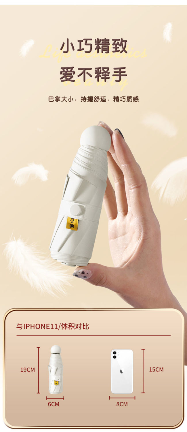 50% 접은 태양 우산 미니 포켓 작은 휴대용 햇살 우산 선 스크린 자외선 보호 야외 써니 우산 캡슐 우산스토어 가기