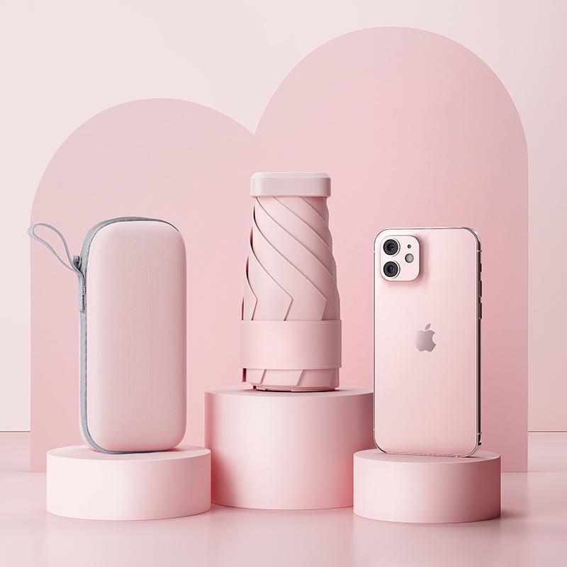• 6본 50% off 우산 + 캡슐 상자 핑크색 두꺼운 비닐 자외선 차단제