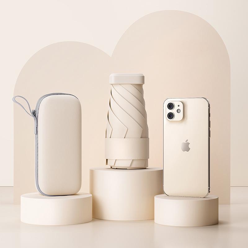 • 6본 50% off 우산 + 캡슐 상자, 황백색, 두꺼운 비닐 자외선 차단제