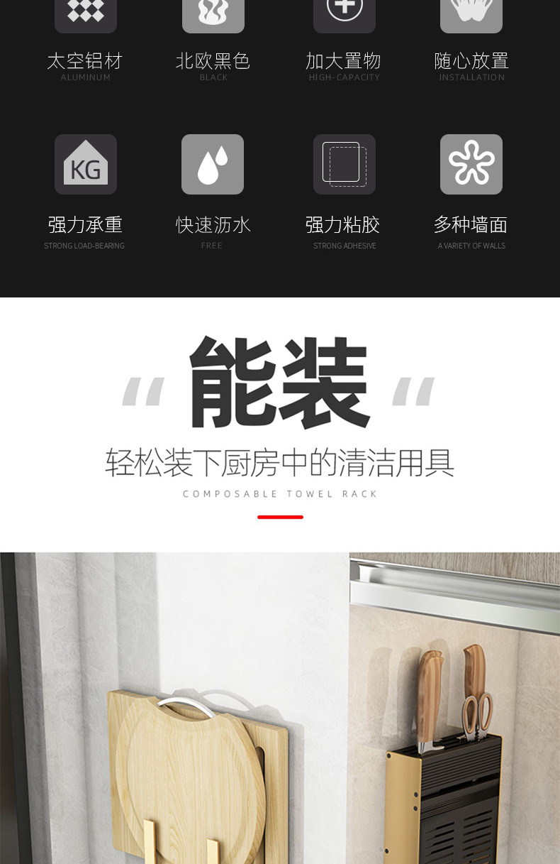 총 애쉬 주방 보관 랙 펀치없는 조미료 벽 장착 나이프 랙 가정용 용품 Daquan 다기능 스토리지 랙스토어 가기