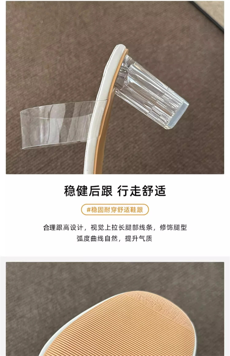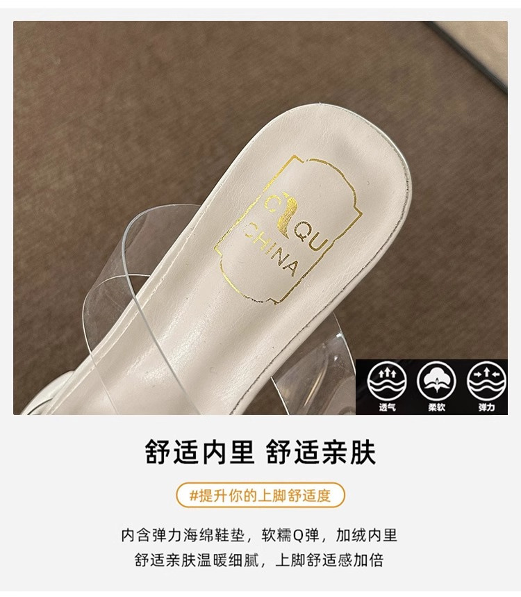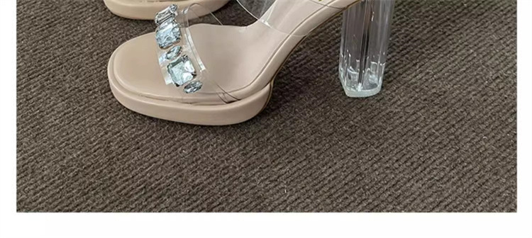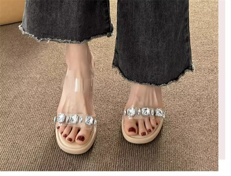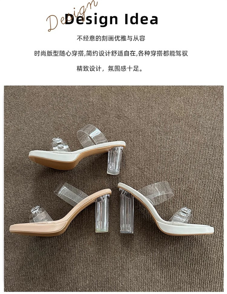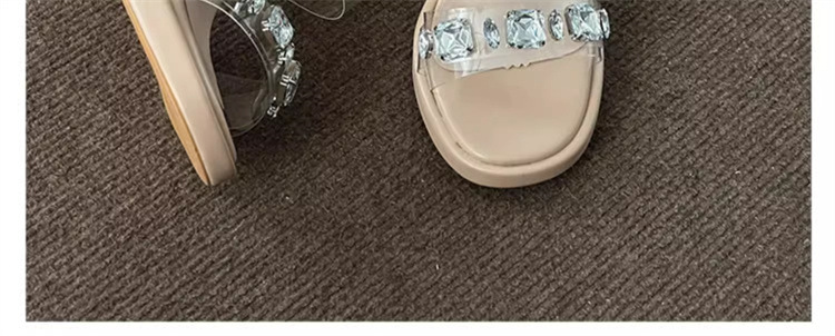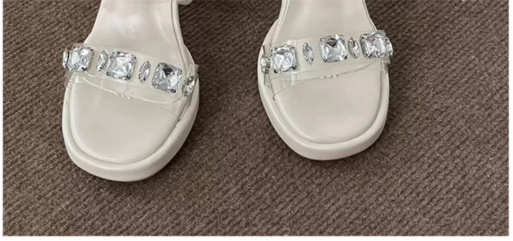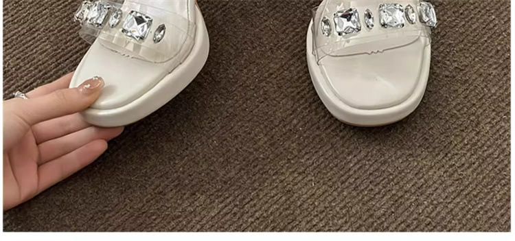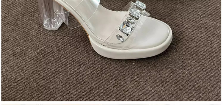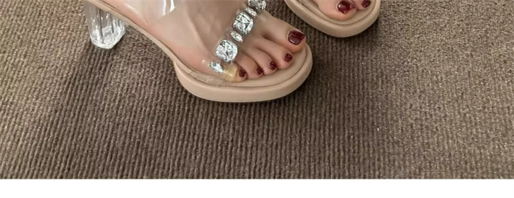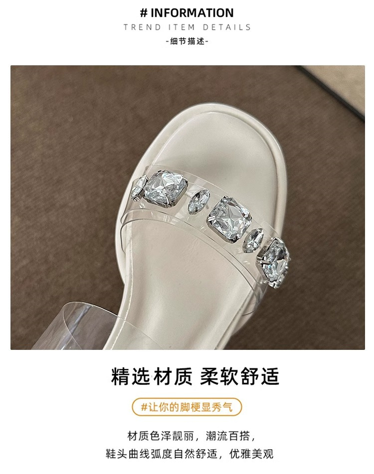 여성용 하이힐 2025 여름 신작 프렌치 두꺼운 굽 라인스톤 투명 크리스탈 샌들 여성 슬리퍼 여성 신발스토어 가기