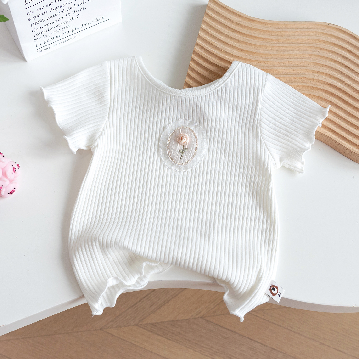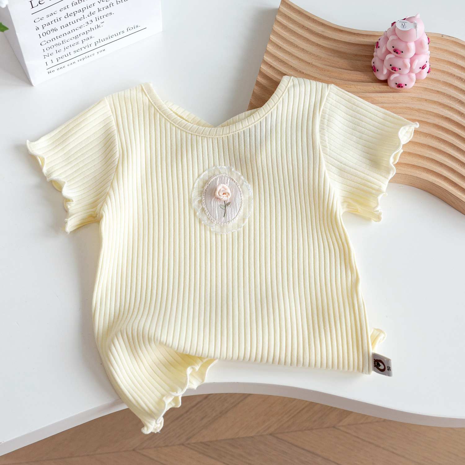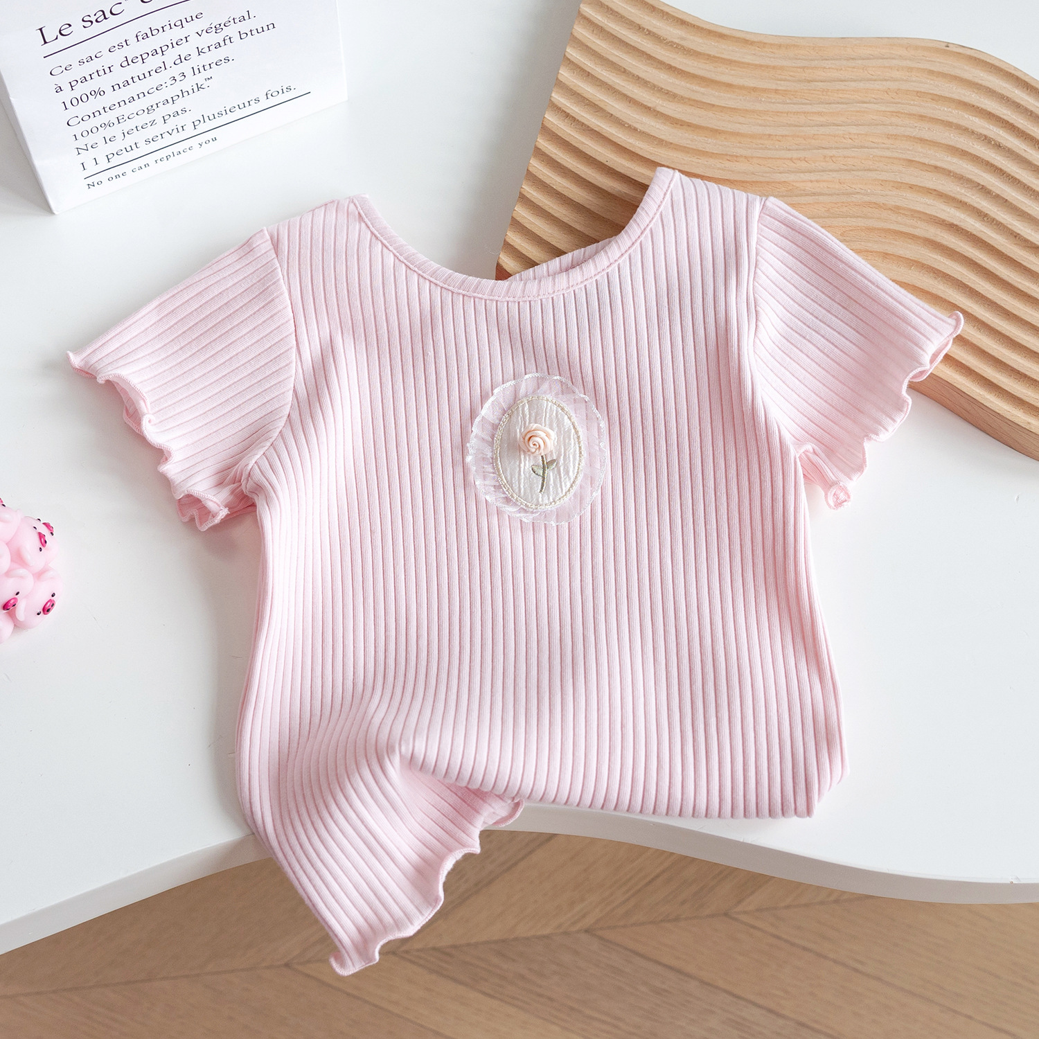 女童夏季新款薄款软软棉T恤2024洋气甜美公主纯色小花半袖短袖衫