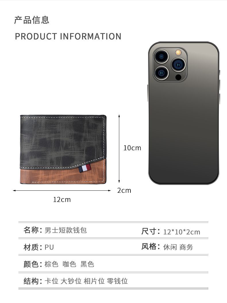 새로운 스티칭 힌지 남자 지갑 짧은 손잡이 투인원 프로스트 멀티 카드 대용량 남성 지갑 멀티 레이어스토어 가기