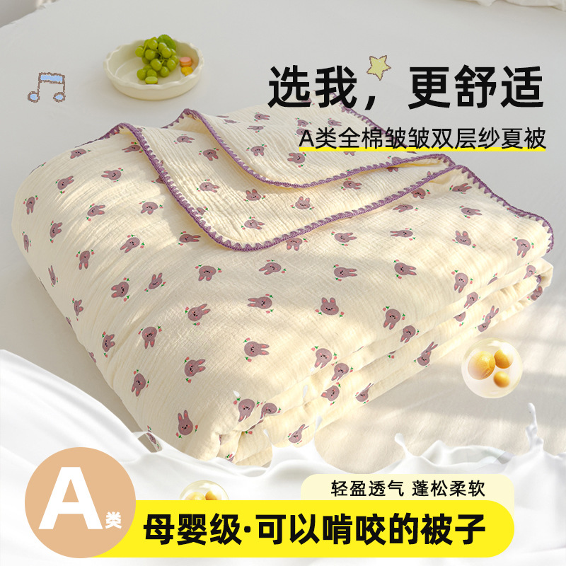 순면 주름 이중 거즈 여름 이불 A급 산모 및 유아용 순면 어린이 에어컨 이불 만화 캐릭터 세탁 가능한 얇은 이불