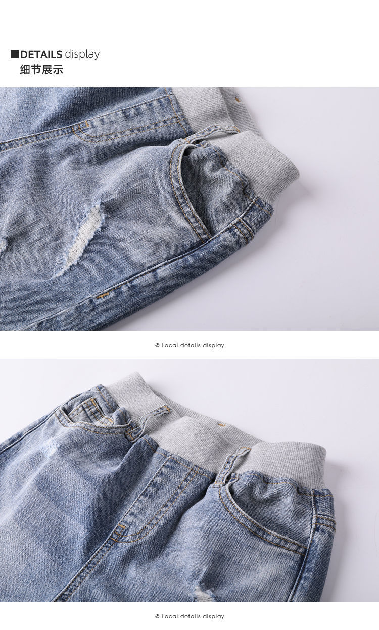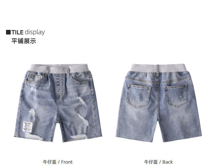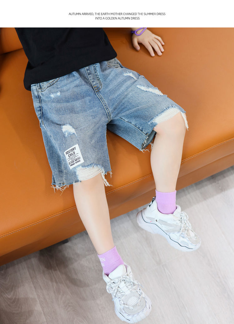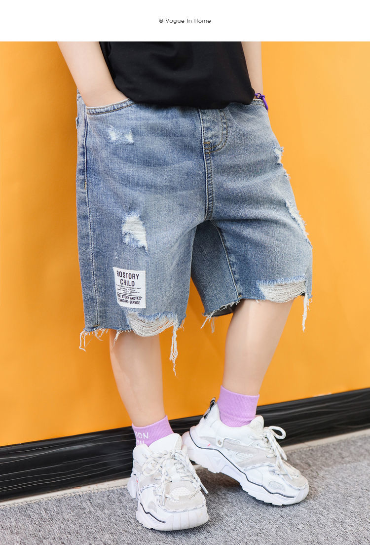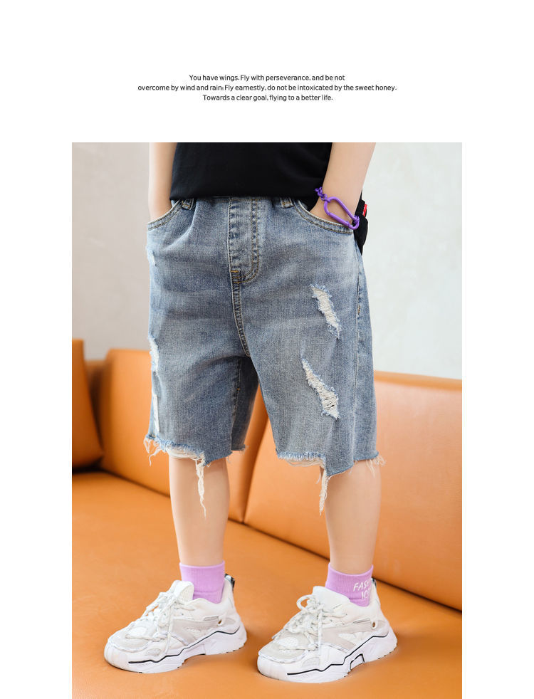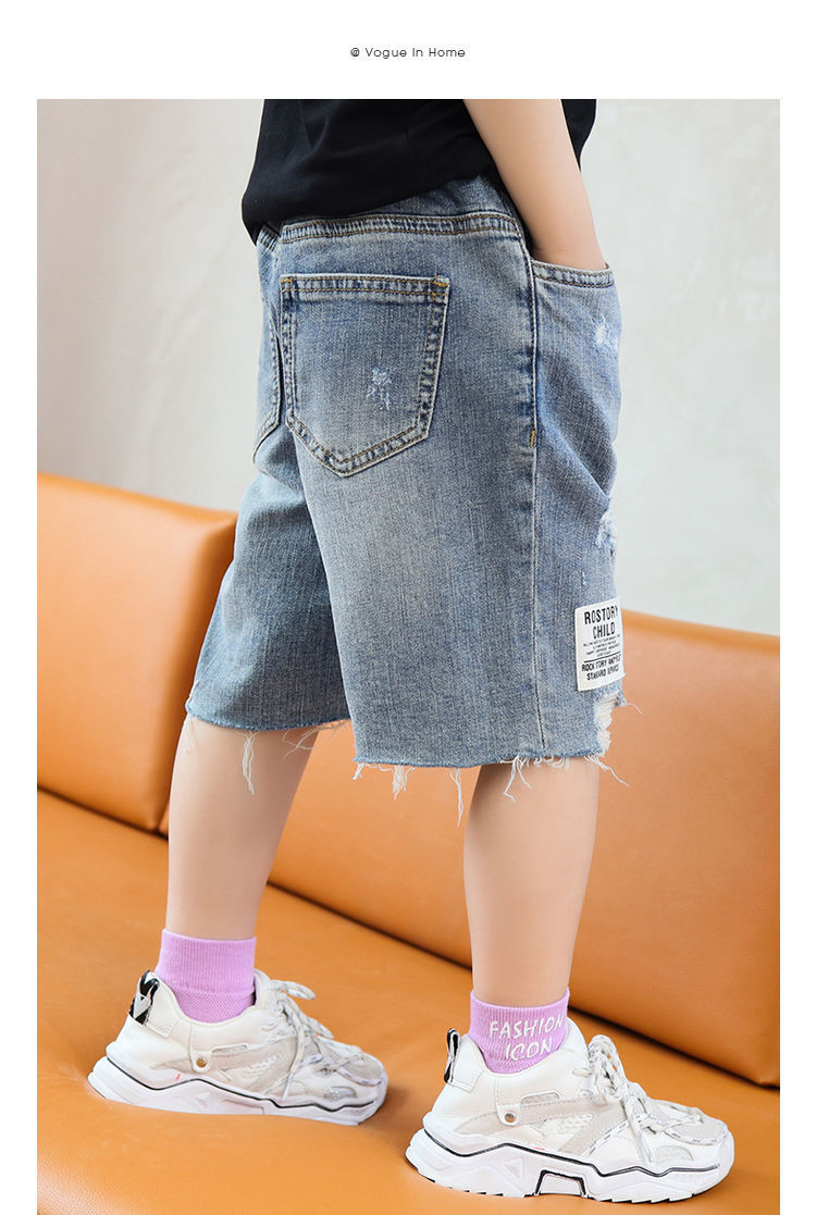 소년 반바지 여름 찢어진 청바지 얇은 바지 큰 어린이 여름 2024 새로운 유행 어린이 바지스토어 가기