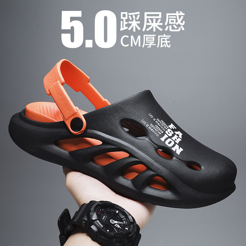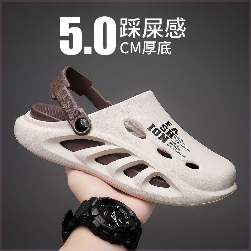 남성용 샌들 여름 새로운 야외 비치 슈즈 커플 외부 착용 소프트 솔 드라이빙 두 착용 똥 두꺼운 느낌 슬리퍼