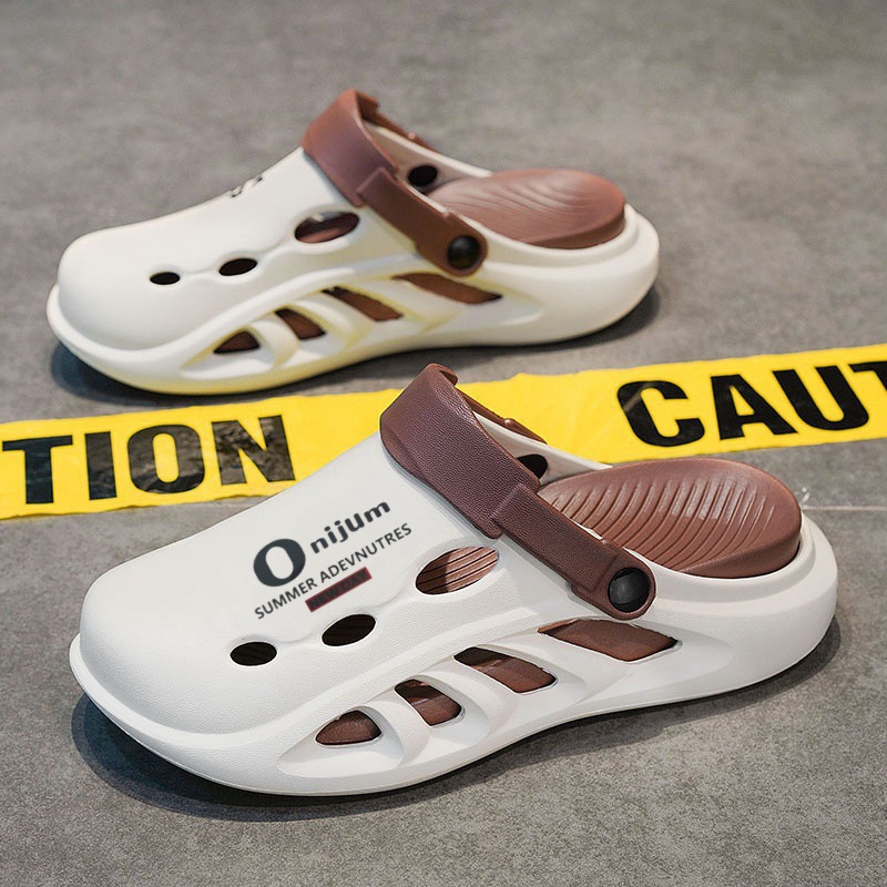 남성용 샌들 여름 새로운 야외 비치 슈즈 커플 외부 착용 소프트 솔 드라이빙 두 착용 똥 두꺼운 느낌 슬리퍼스토어 가기