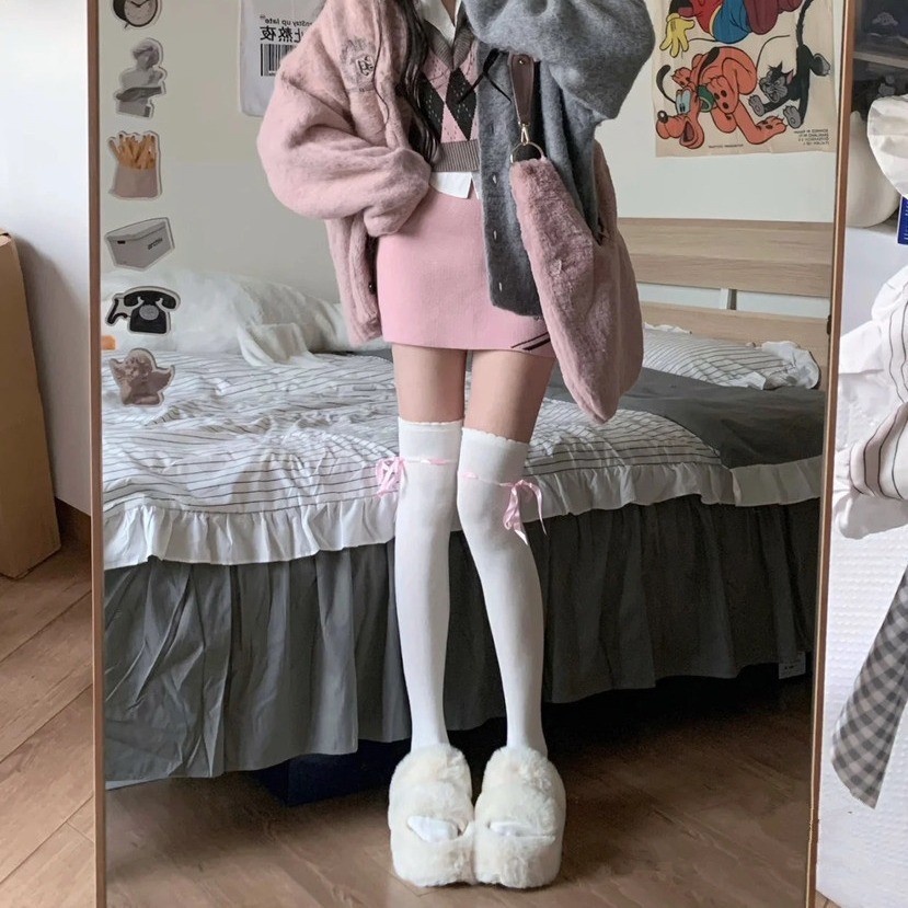 2024 일본 리본 무릎 양말 봄과 가을 거품 입 높은 양말 jk 유니폼 긴 양말스토어 가기