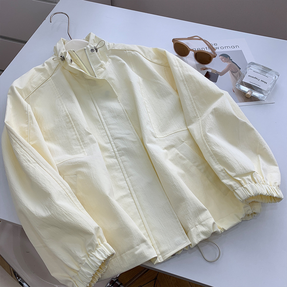 품질 관리! 디자인 감각 느슨한 캐주얼 칼라 방풍 재킷 코트 짧은 짧은 코트 여성 우유 살구색 색상