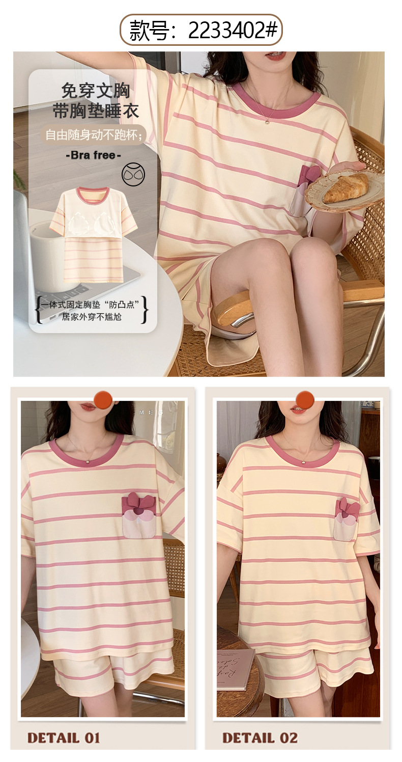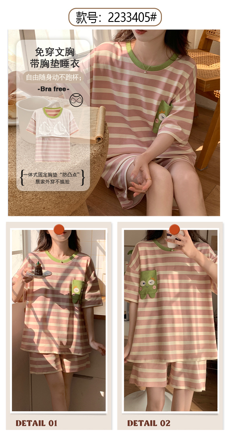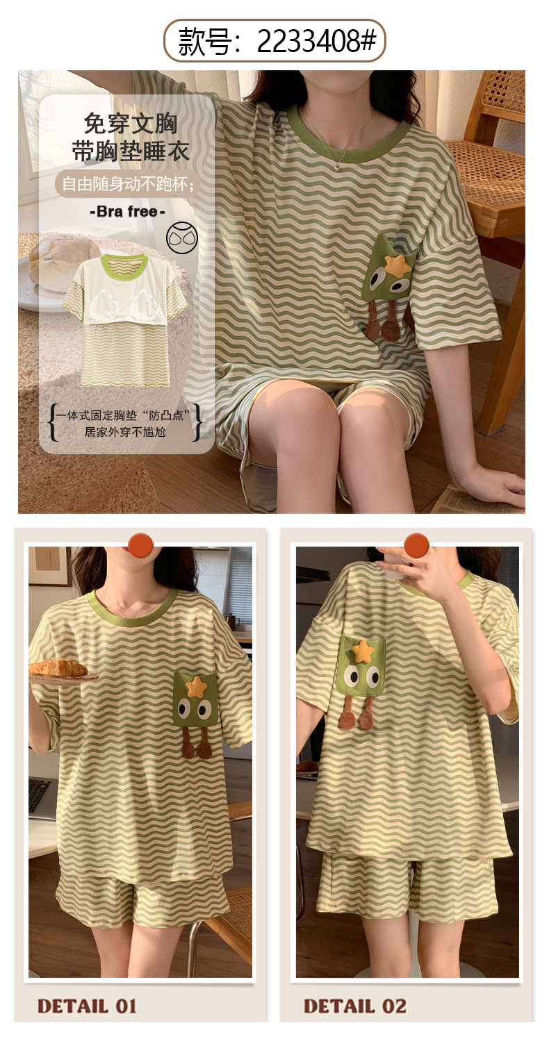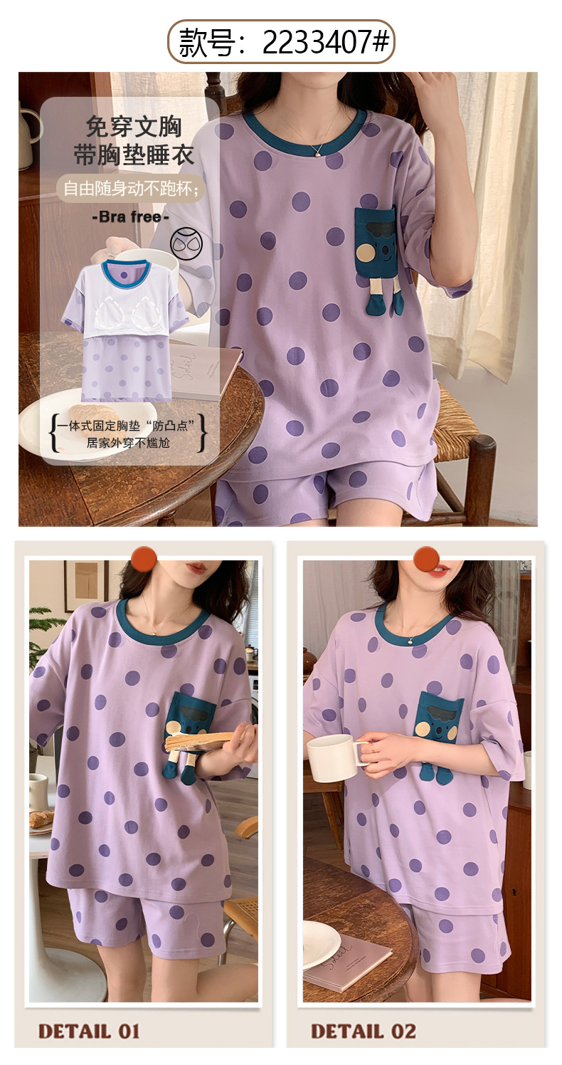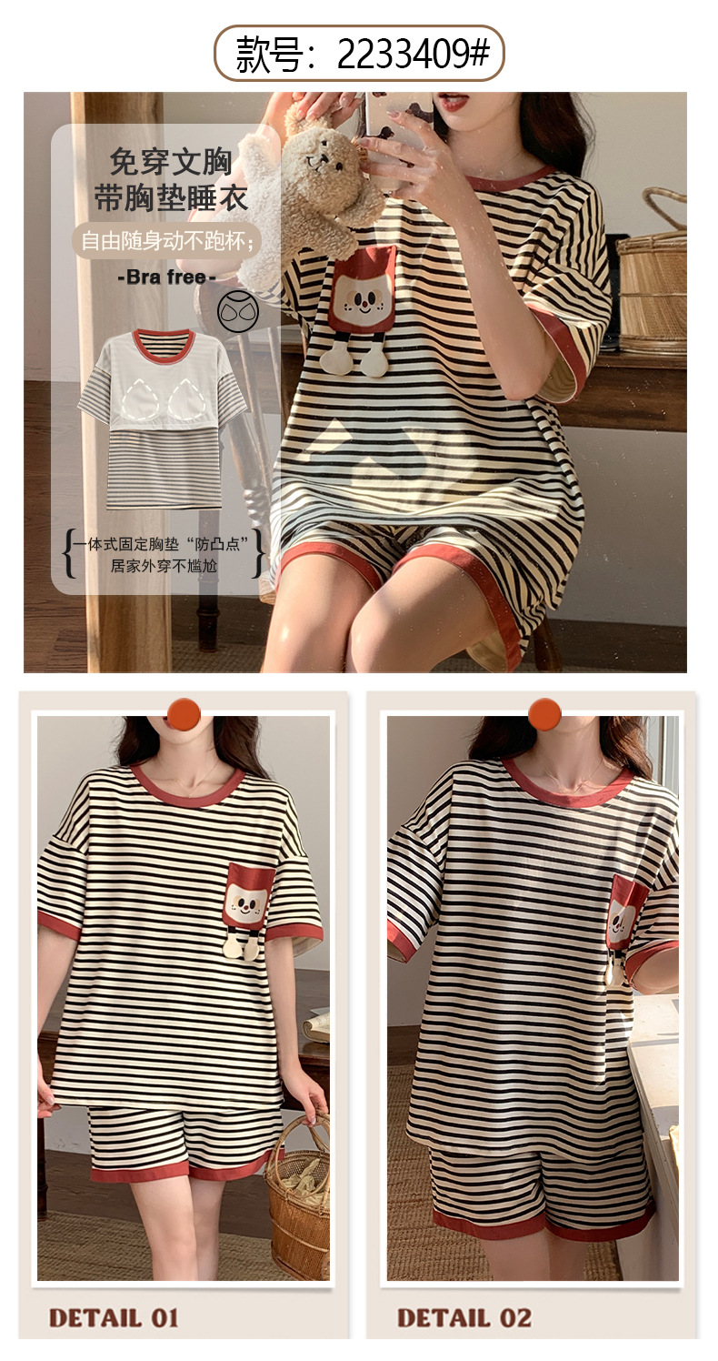 2024 가슴 패드 여성의 여름 얇은 만화 귀여운 소녀 학생 여름 겉옷 홈 옷을 입은 반팔 잠옷스토어 가기