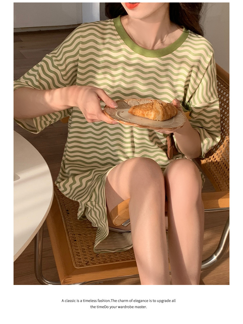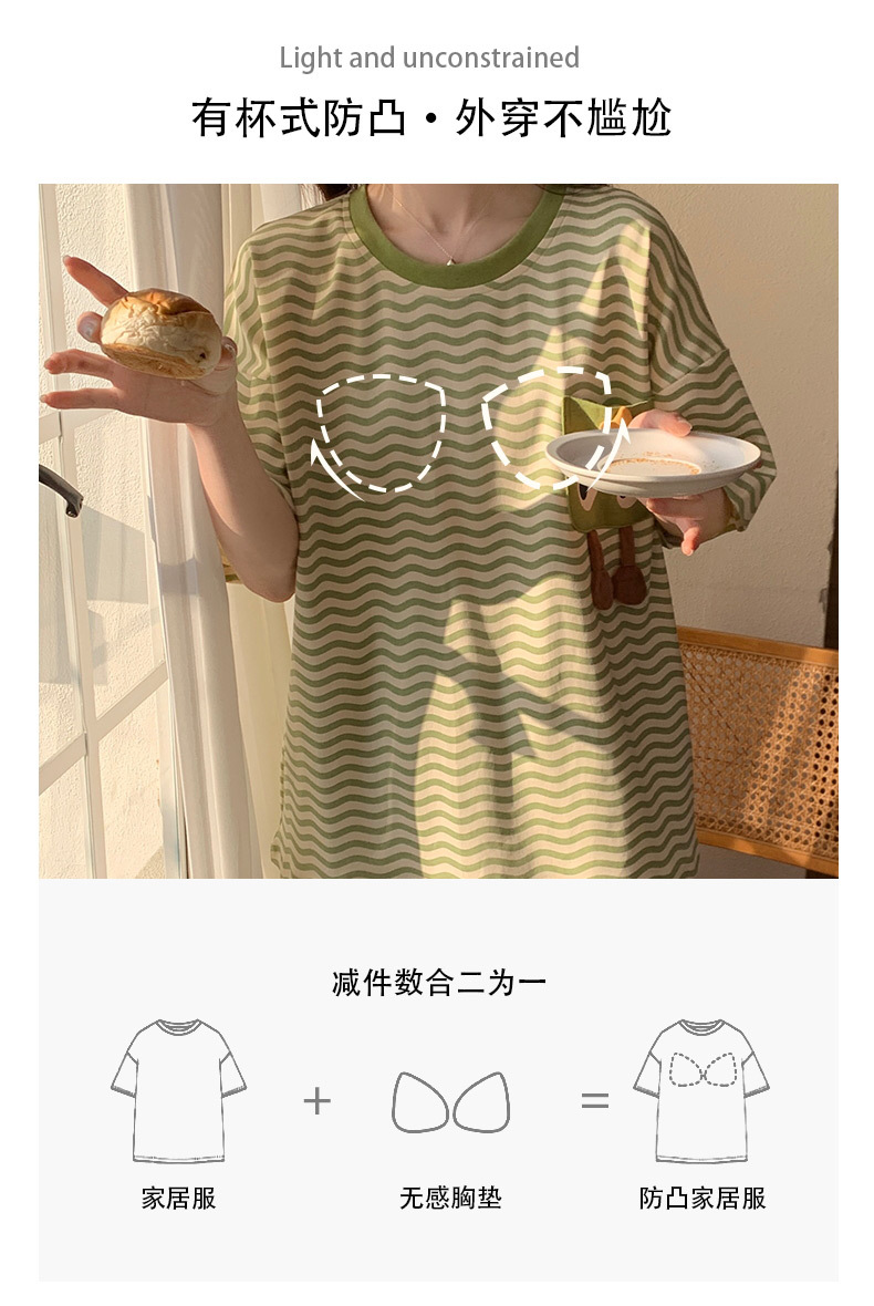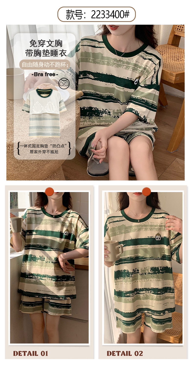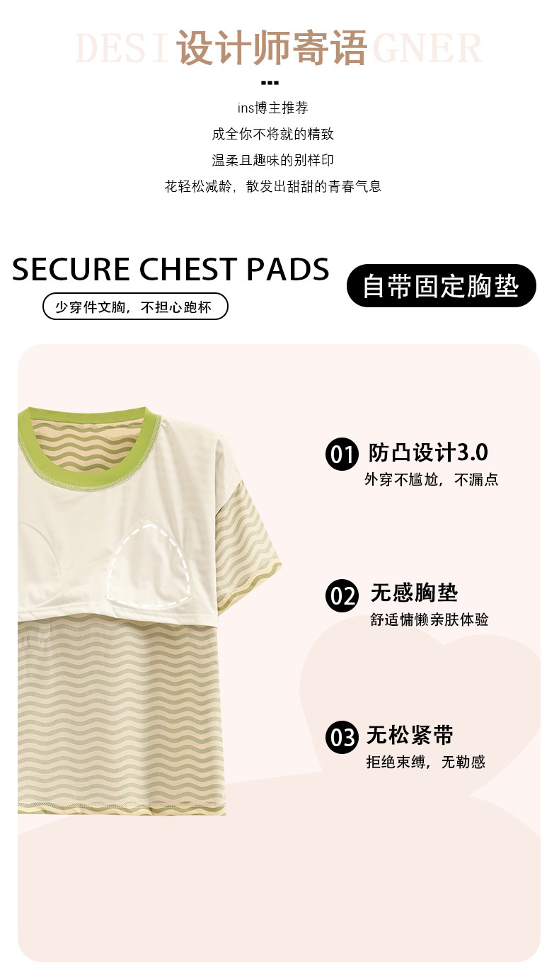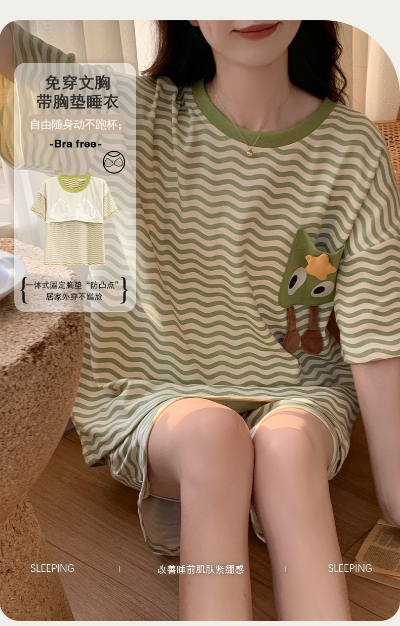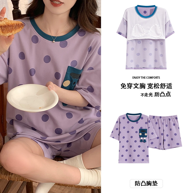 2024 가슴 패드 여성의 여름 얇은 만화 귀여운 소녀 학생 여름 겉옷 홈 옷을 입은 반팔 잠옷스토어 가기