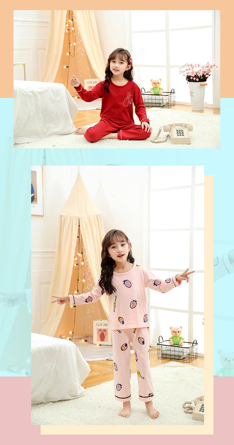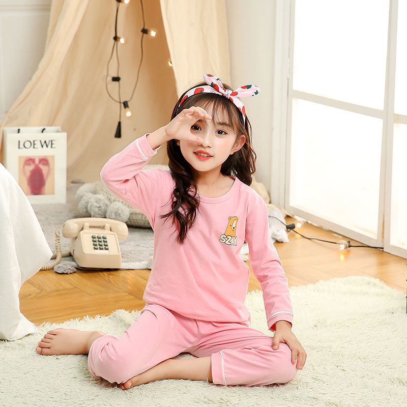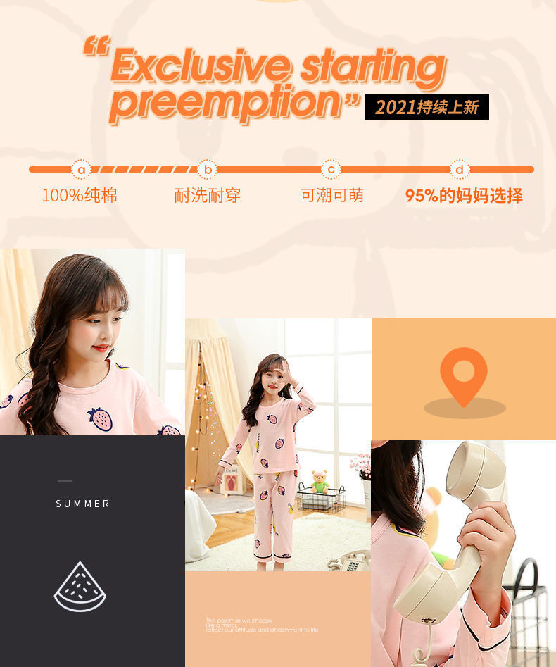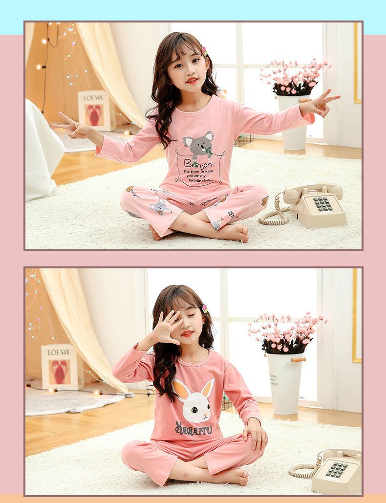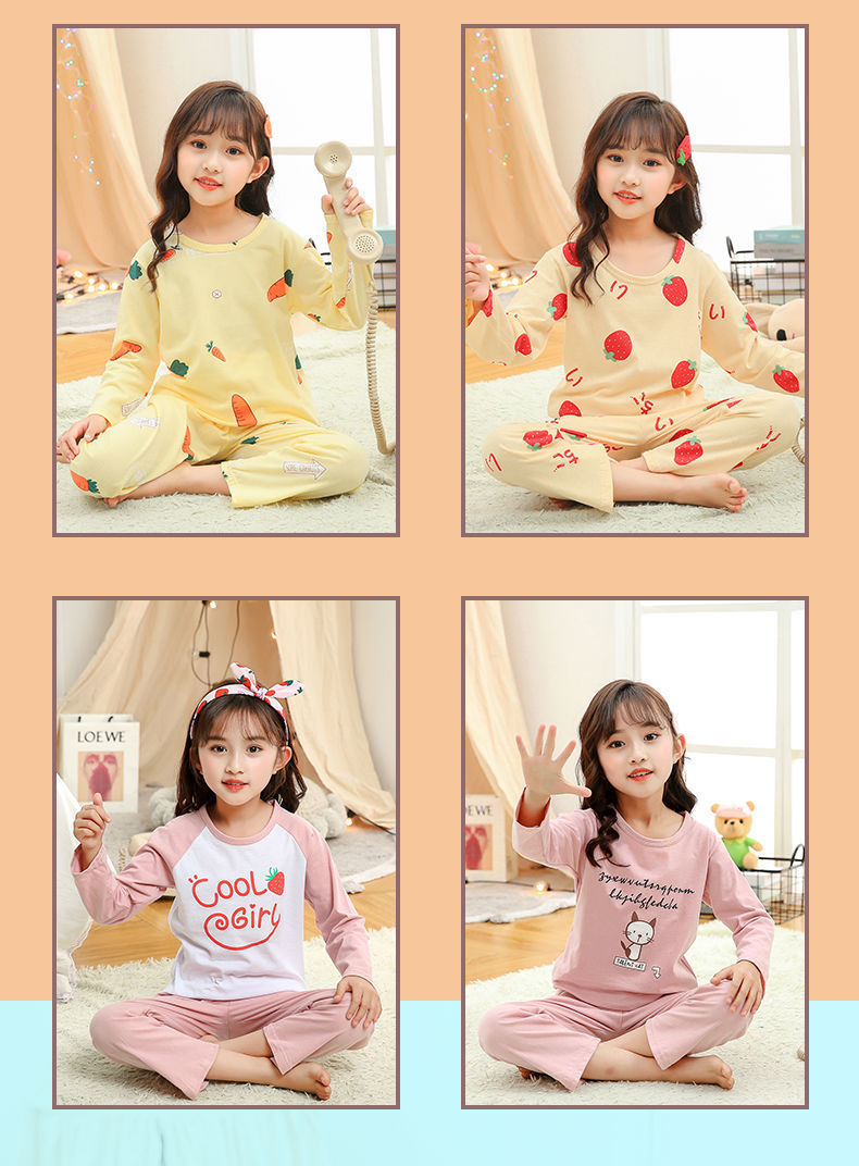 클래스 A 100% 순수한면 소녀 잠옷 여름 얇은 긴 소매 소녀 중 큰 어린이 집 옷 에어컨 옷 세트스토어 가기