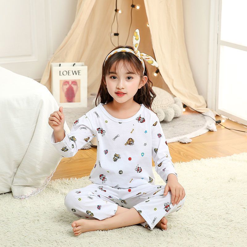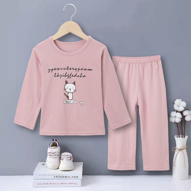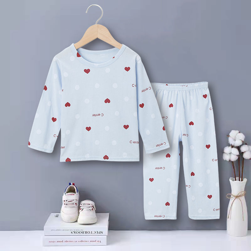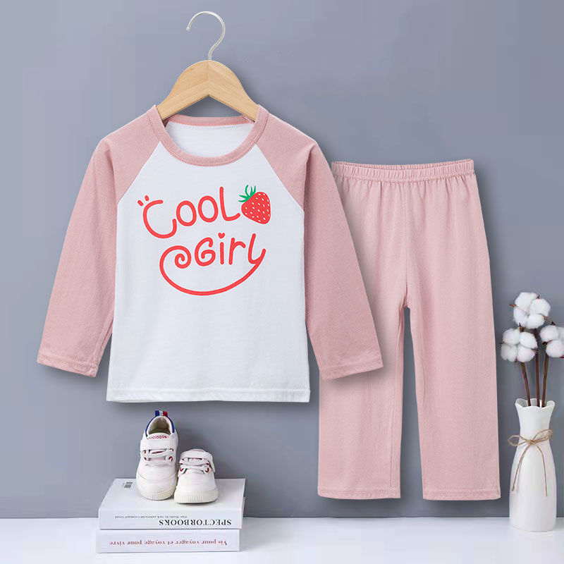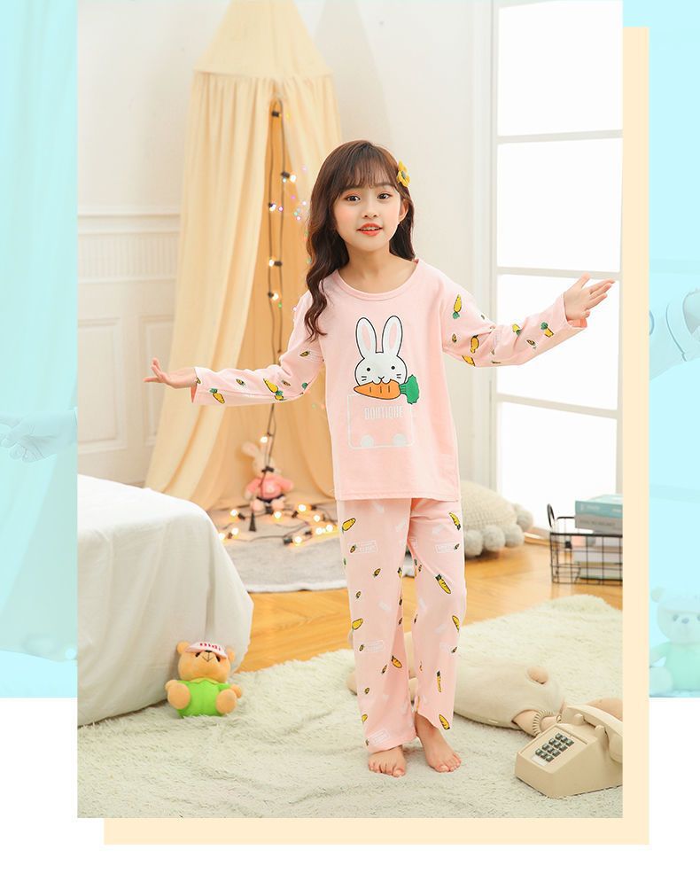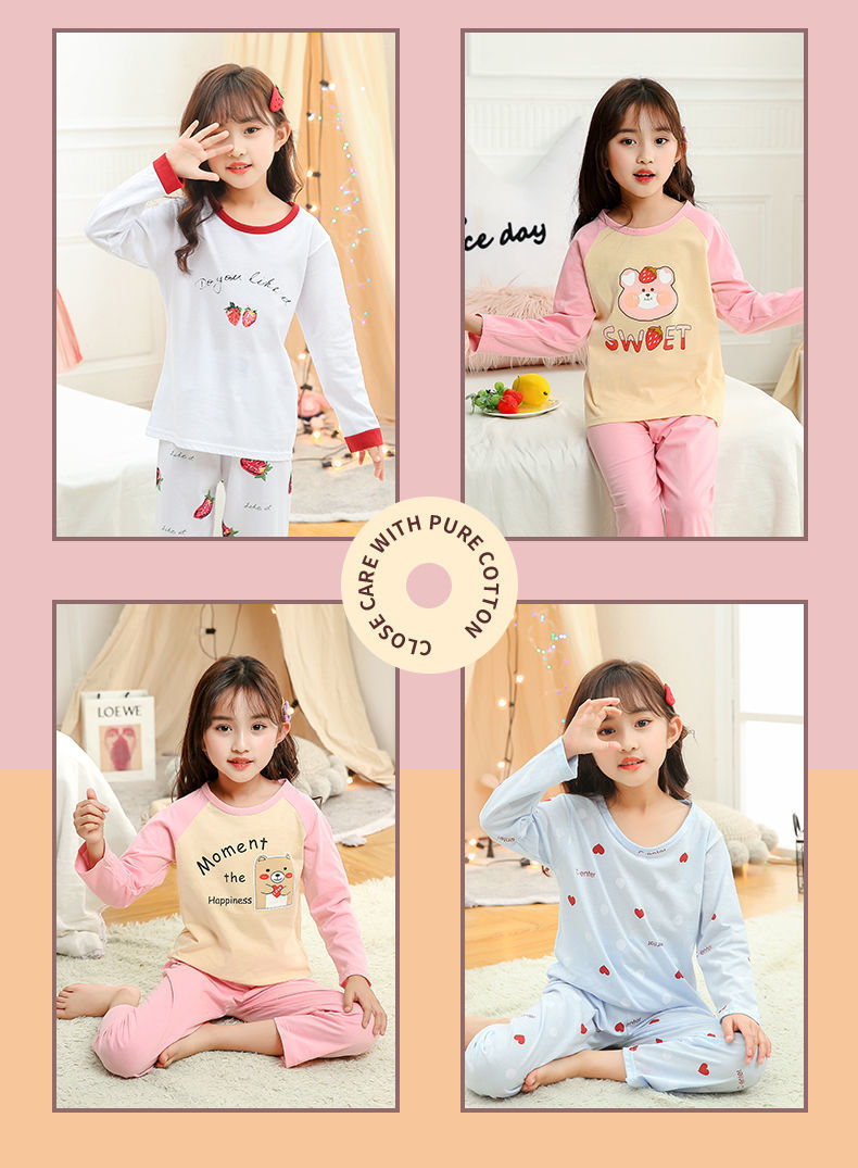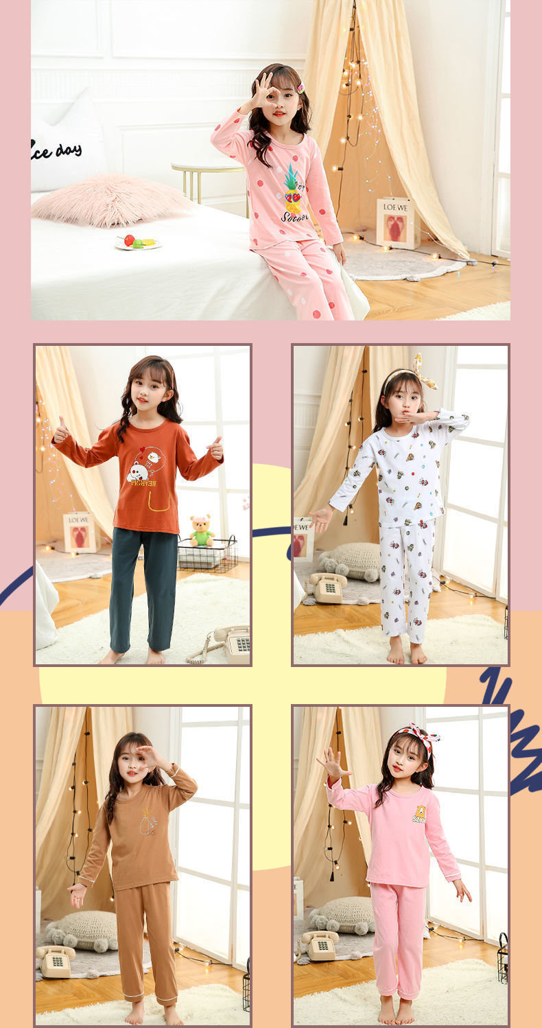 클래스 A 100% 순수한면 소녀 잠옷 여름 얇은 긴 소매 소녀 중 큰 어린이 집 옷 에어컨 옷 세트스토어 가기