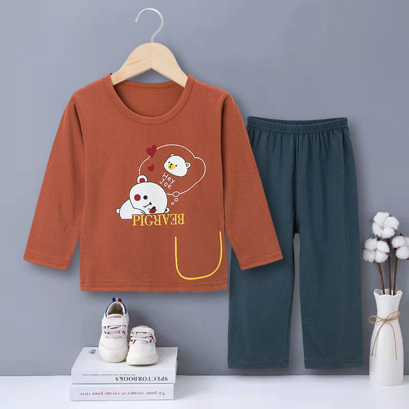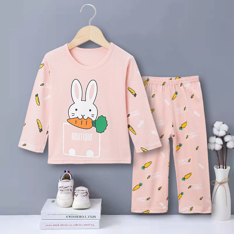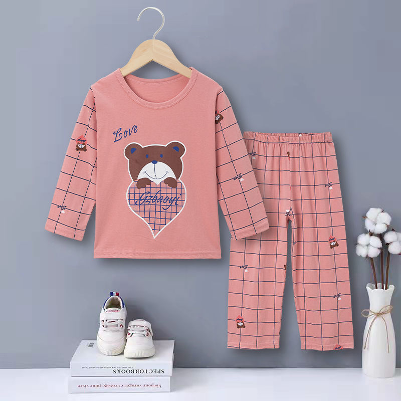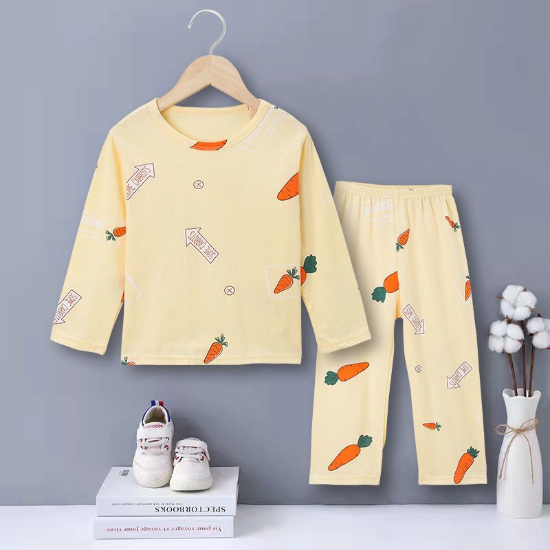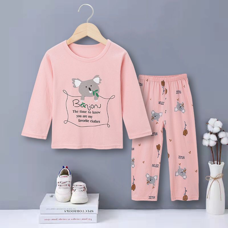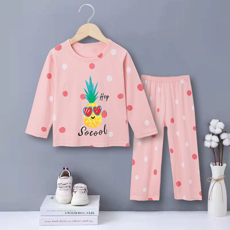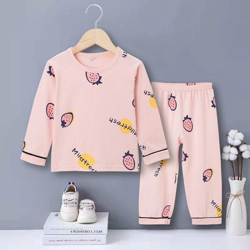 클래스 A 100% 순수한면 소녀 잠옷 여름 얇은 긴 소매 소녀 중 큰 어린이 집 옷 에어컨 옷 세트스토어 가기