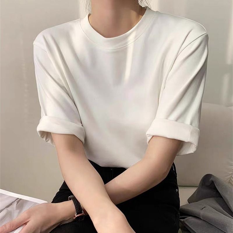 230g 무거운 질감 면 반팔 티셔츠 여성용 최고 단색 흰색 조커 여성용 내면베이스 셔츠스토어 가기