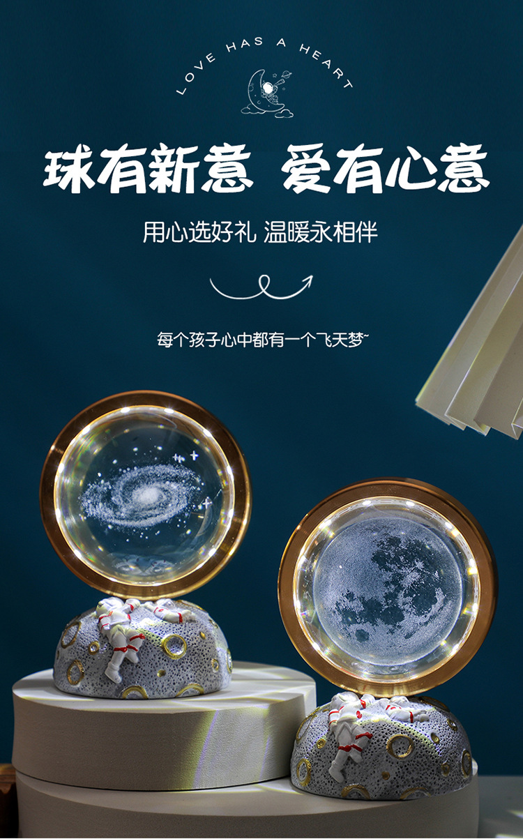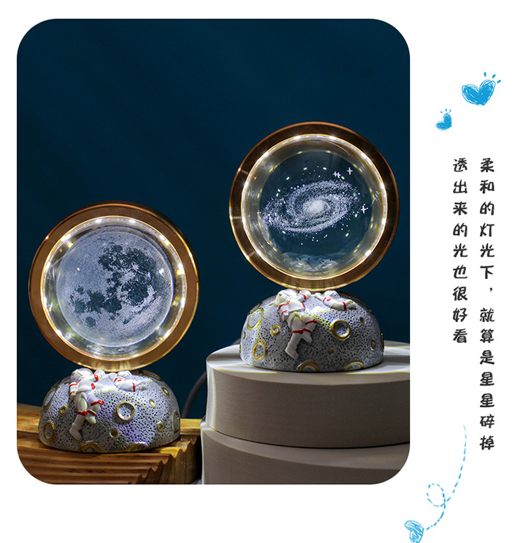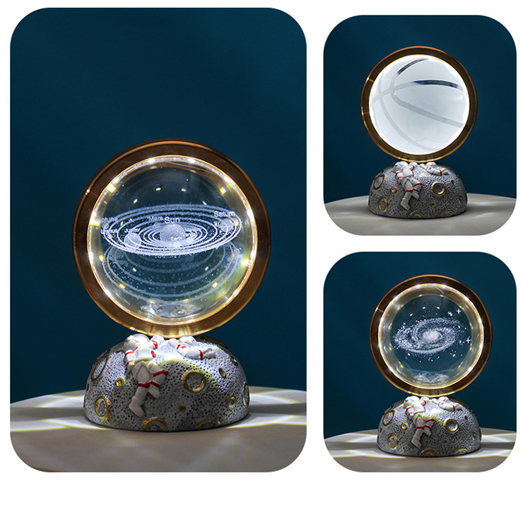여자 급우 생일 선물 분위기 빛을 보내기 위해 도매 별이 빛나는 하늘 우주 비행사 창조적 인 3D 조각 크리스탈 볼 나이트 라이트
