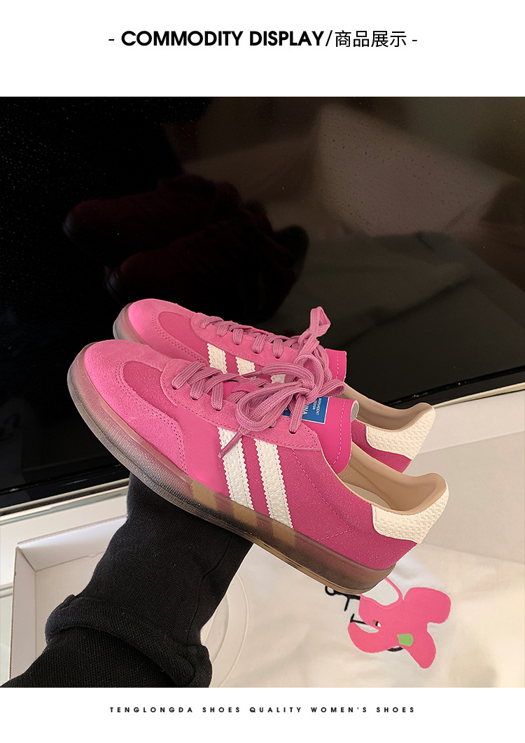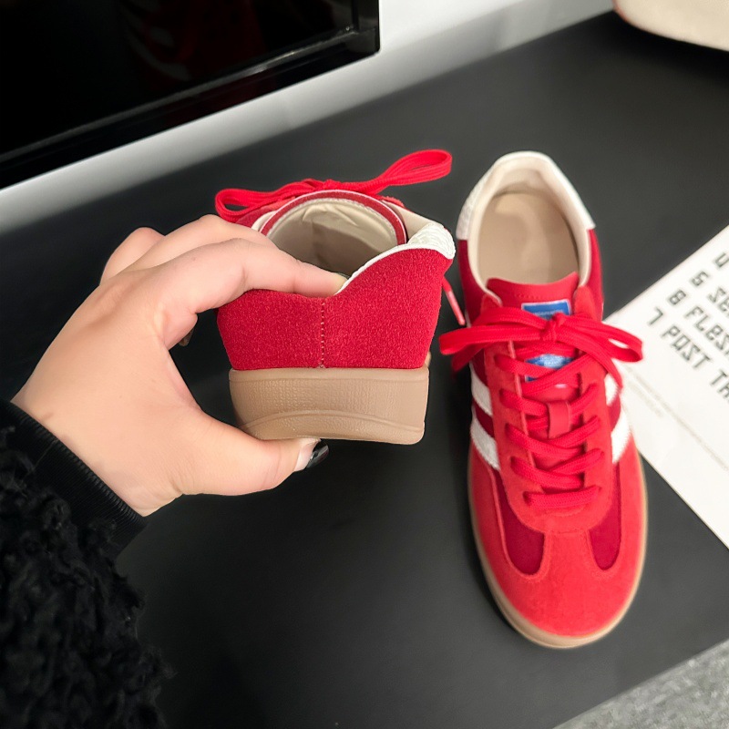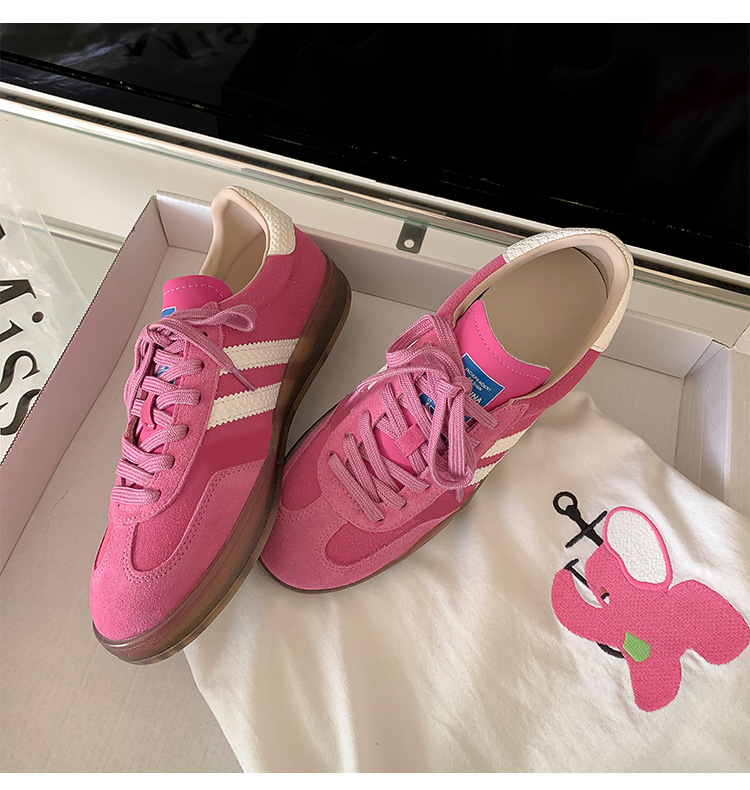 정품 가죽 딸기곰 데드트레이닝 슈즈 여성용 2026 핑크 캐주얼 플랫 키높이 아간 슈즈 여성용 키높이 여성화스토어 가기