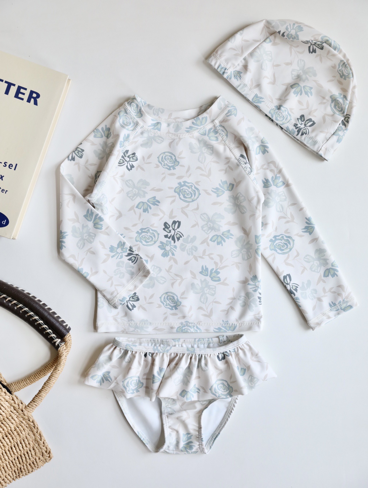 여아용 인스 플로럴 분리형 수영복 2026 신상 아동용 속건성 수영복 여자 아기 긴팔 자외선 차단 수영복