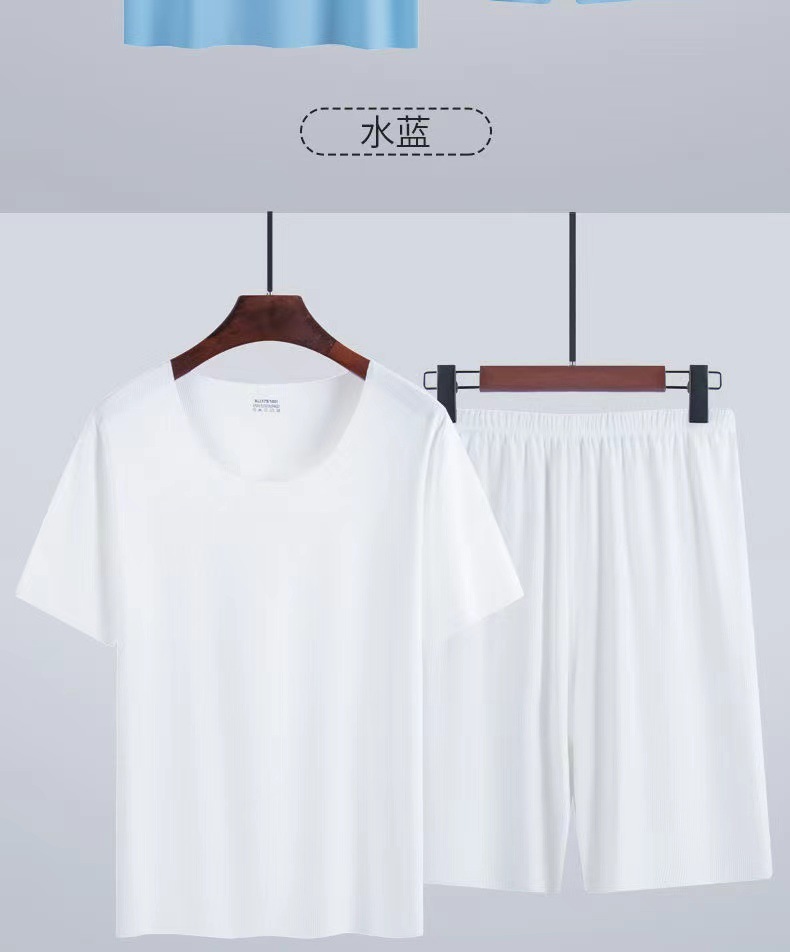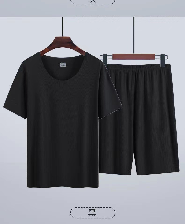 여름 고급 아이스 실크 크루 넥 단색 반팔 티셔츠 남성용 얇은 Ins 트렌디 한 스포츠 캐주얼 루즈 반바지 세트