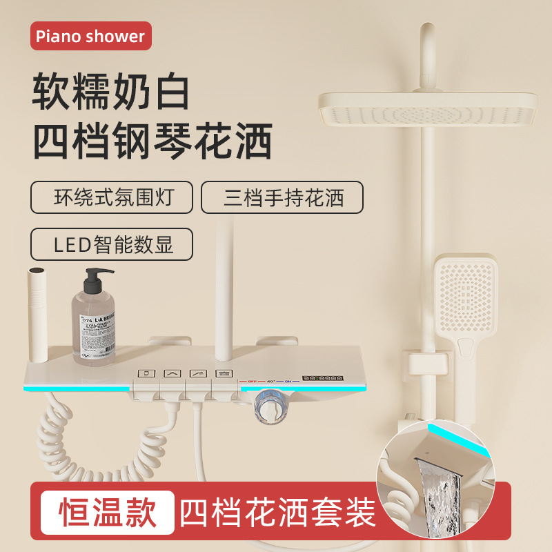 우유빛 샤워기 세트, 온도조절 디지털 디스플레이, 무드등, 호텔 및 가정용, 피아노 키 디자인, 강압 샤워헤드