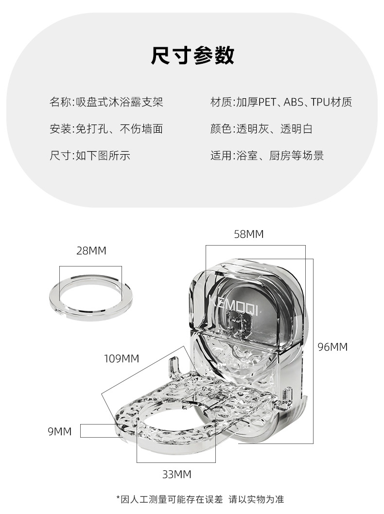 • 흡입 컵 샤워 젤 브래킷 투명
