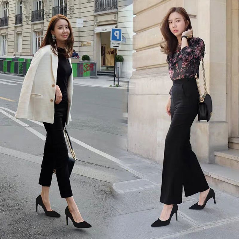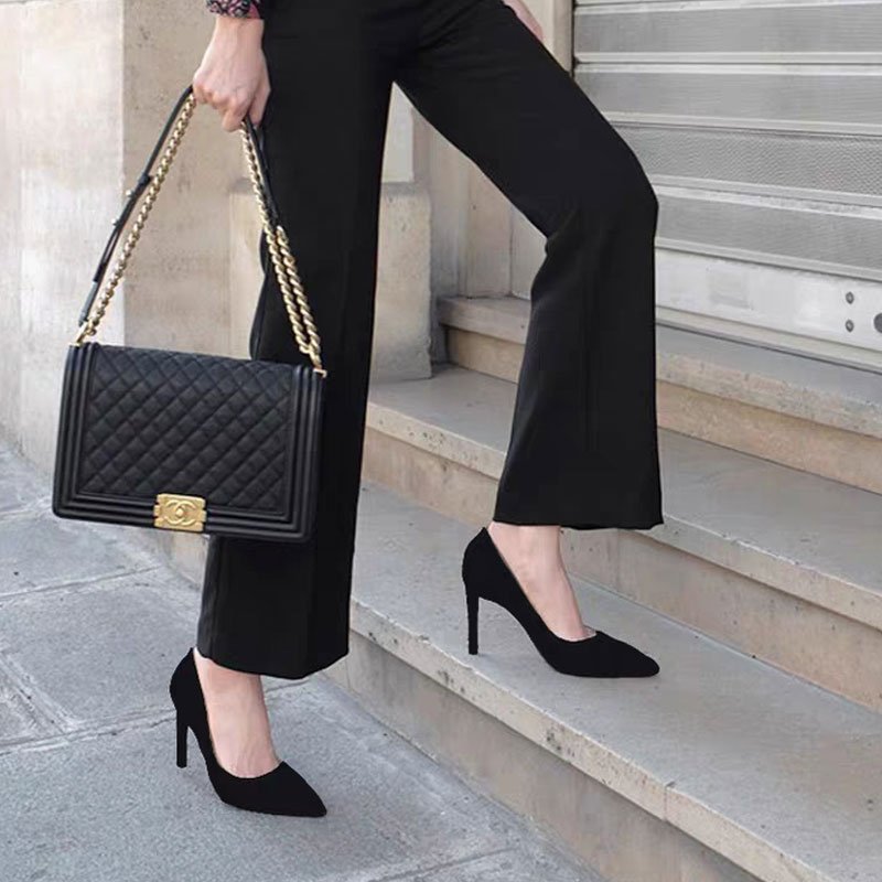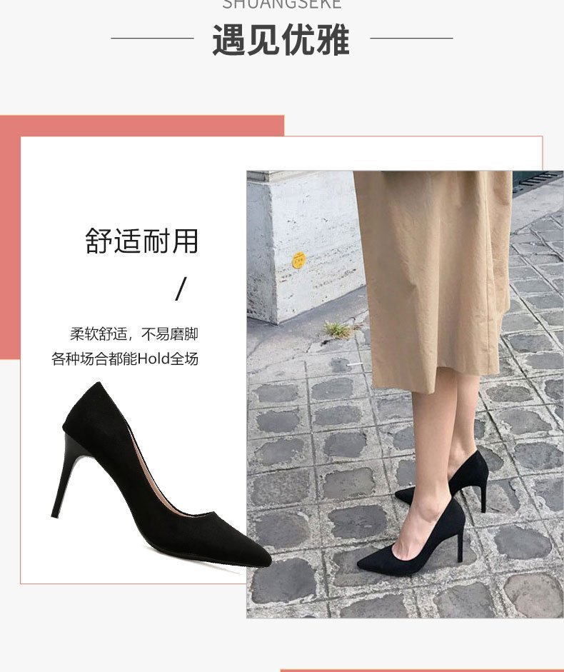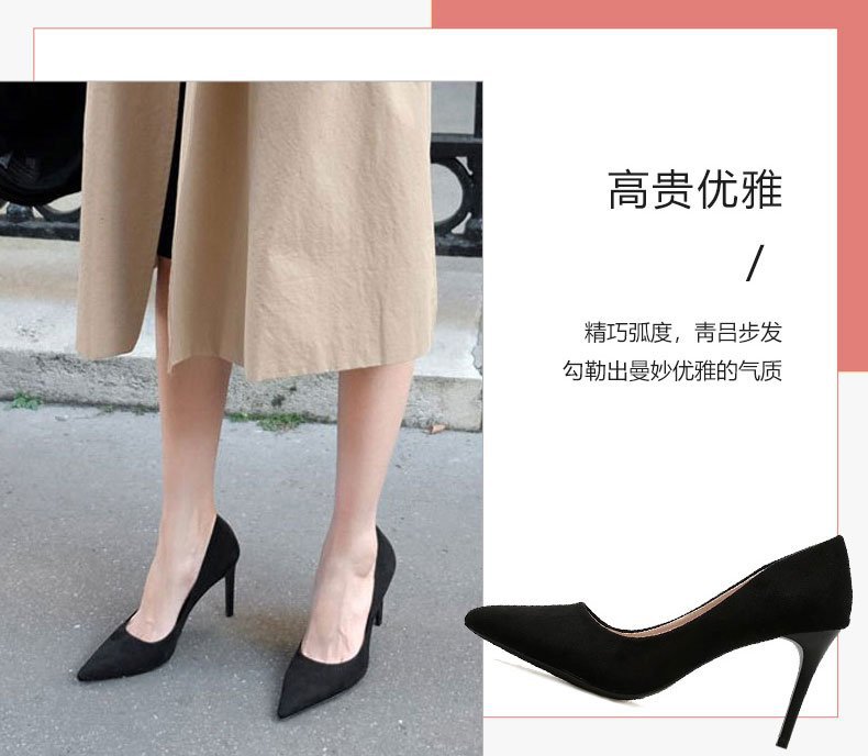 2024 새로운 스웨이드 프로페셔널 하이힐 여성용 스틸레토 힐 섹시 소프트 바텀 올 매치 통근자 포인팅 숄로우 입 싱글 슈즈스토어 가기