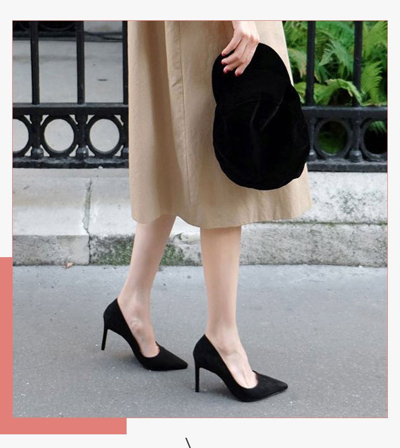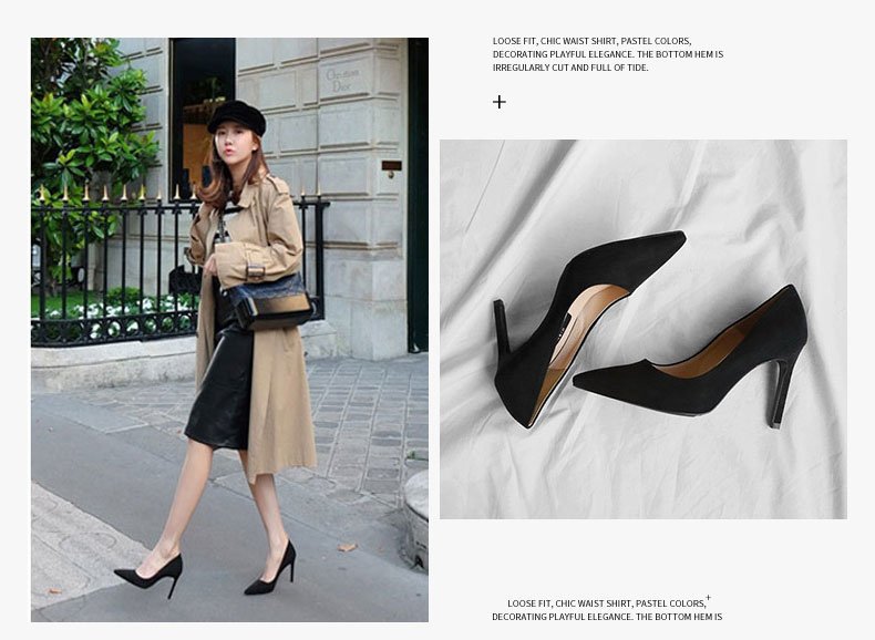 2024 새로운 스웨이드 프로페셔널 하이힐 여성용 스틸레토 힐 섹시 소프트 바텀 올 매치 통근자 포인팅 숄로우 입 싱글 슈즈