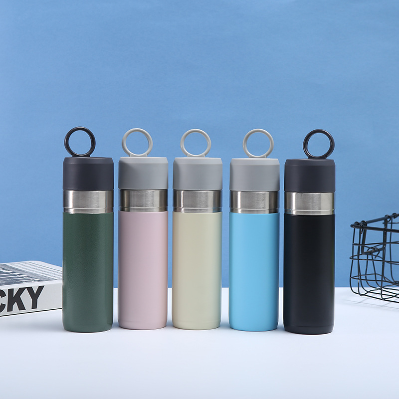 맞춤형 국경 간 304 스테인레스 스틸 절연 컵 야외 등산 및 사이클링 스포츠 물병 사무실 자동차 운반 손잡이 물 컵