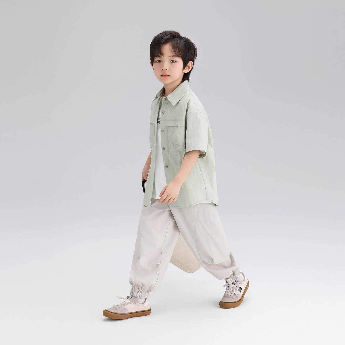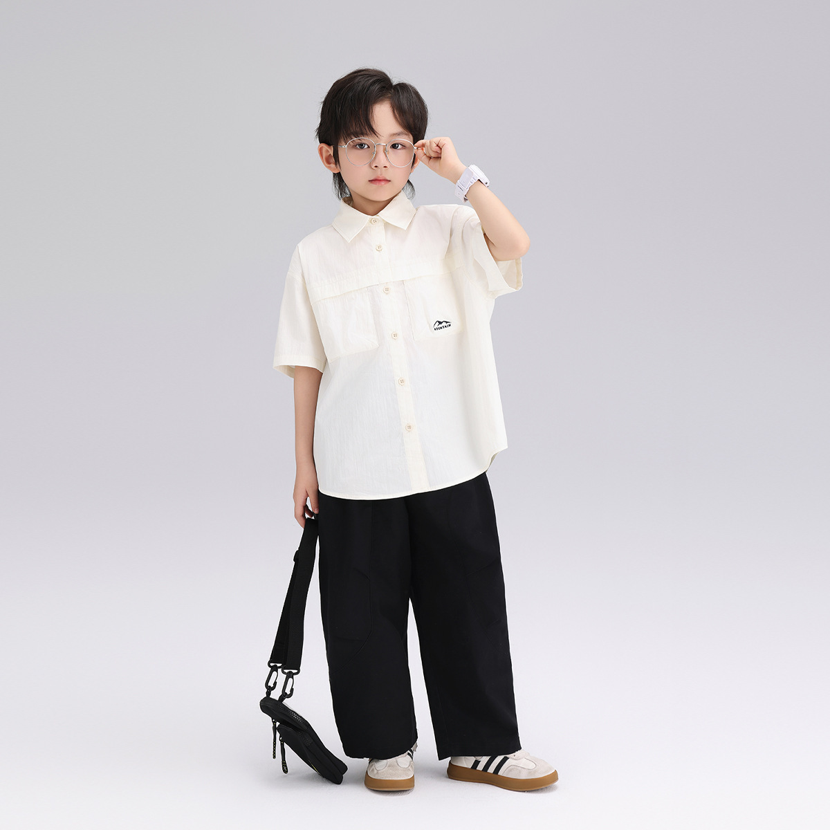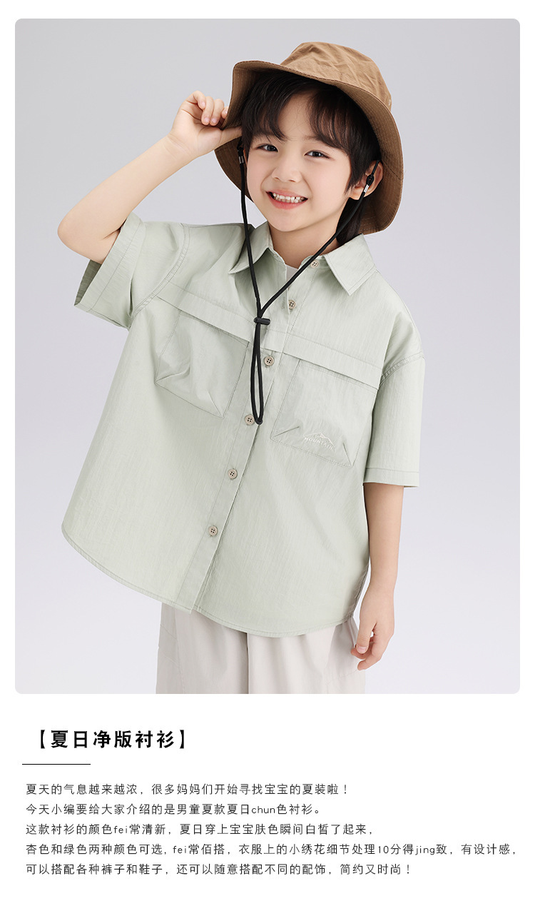 여름 새 소년 반팔 셔츠 2024 여름 새로운 어린이 예술 캐주얼 셔츠 단색 면 셔츠스토어 가기
