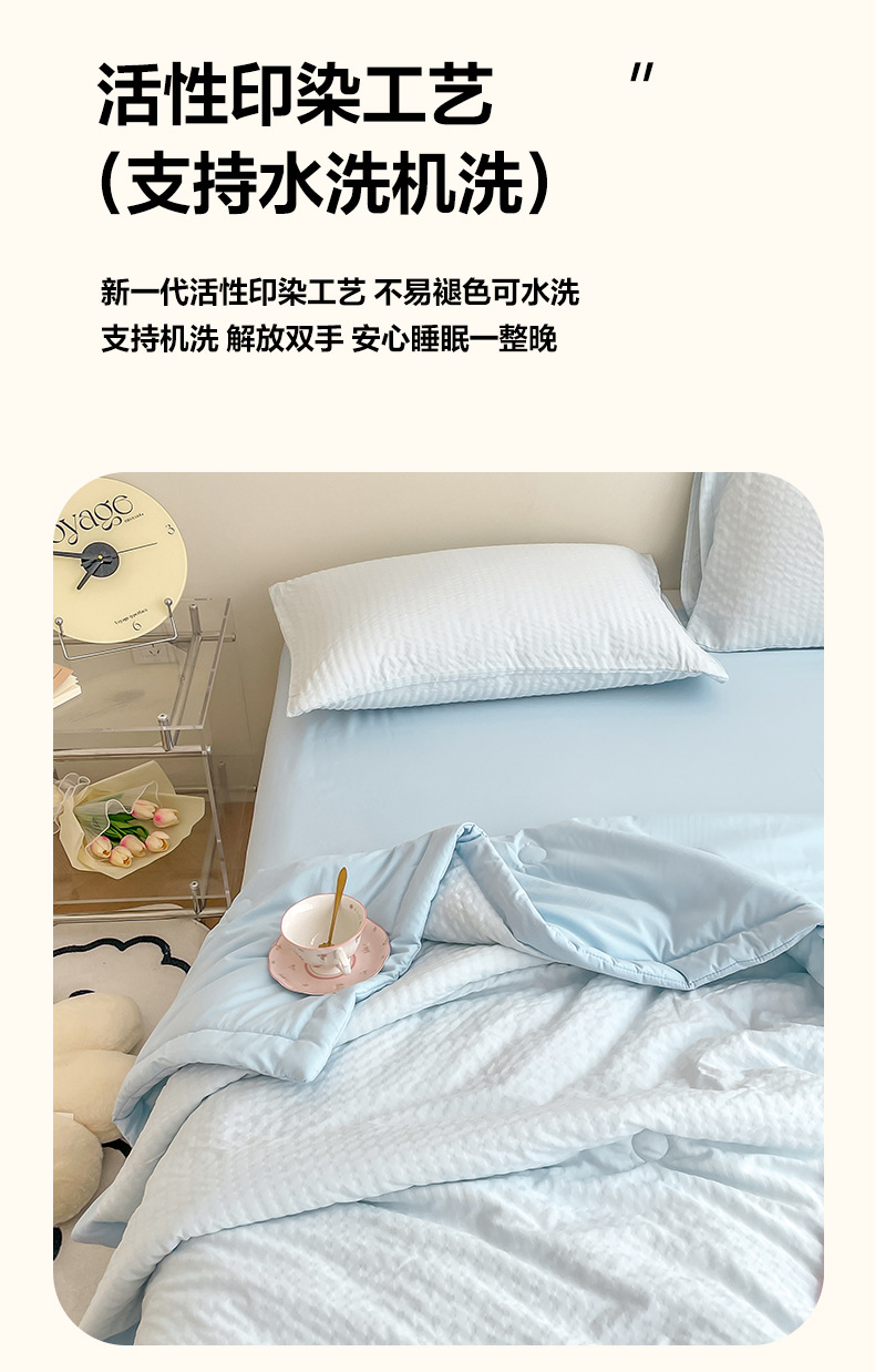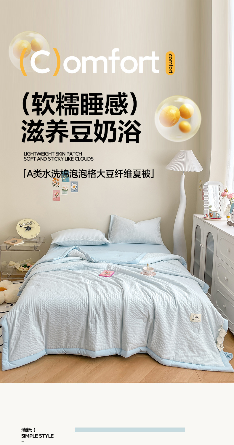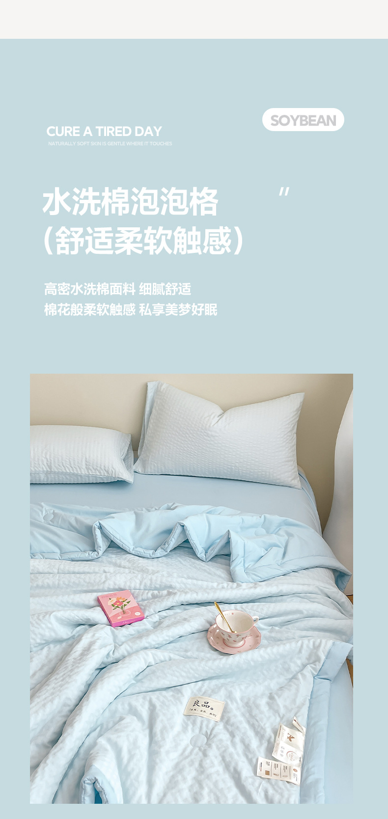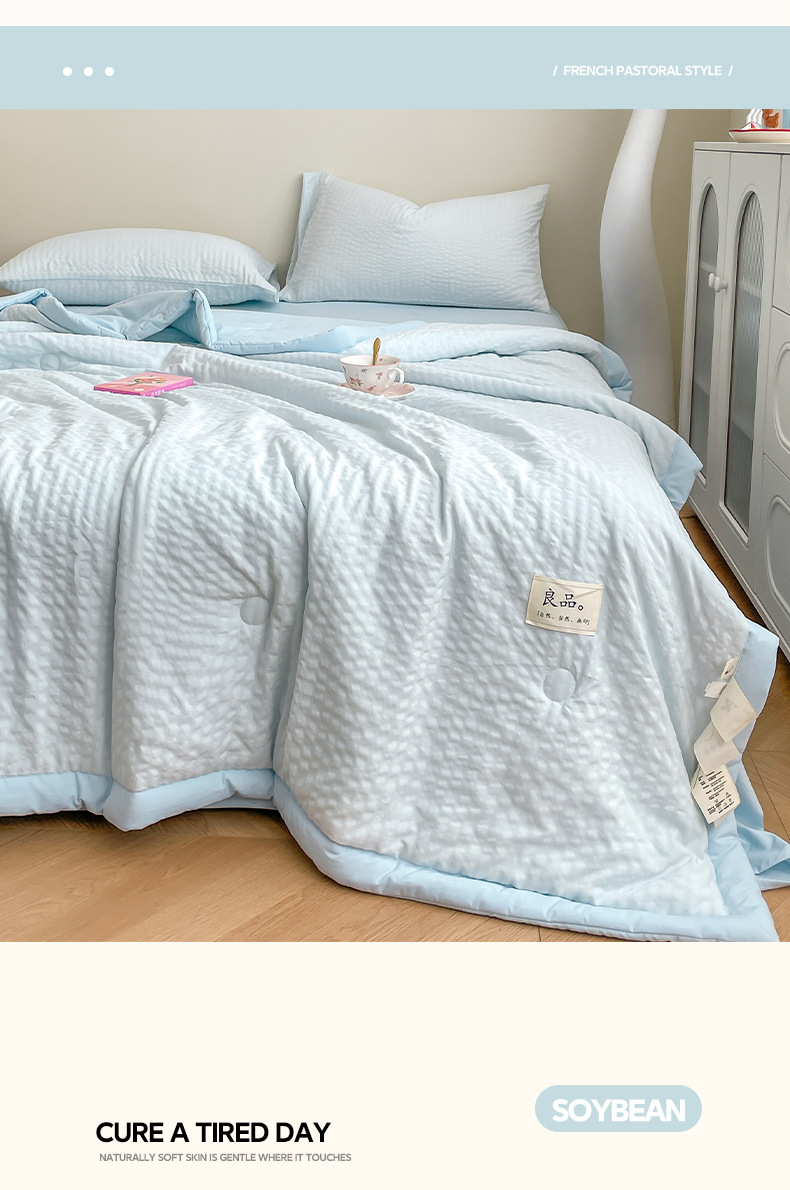 좋은 클래스 A 버블 격자 콩 섬유 여름 시원한 이불 4 조각 에어컨 이불 여름 싱글 더블 얇은 기계 세탁기
