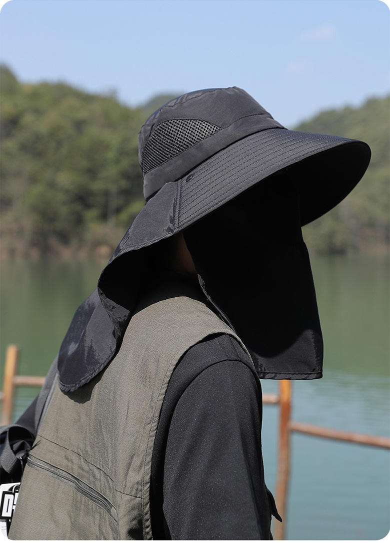 남성용 자외선 차단 모자, 목 보호대, 일체형 낚시 및 등산 모자, 야외 봄 여름 통기성 어부 모자, 방풍 및 챙이 큰 모자스토어 가기