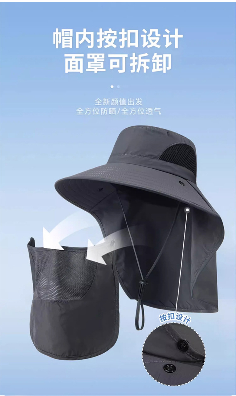 남성용 자외선 차단 모자, 목 보호대, 일체형 낚시 및 등산 모자, 야외 봄 여름 통기성 어부 모자, 방풍 및 챙이 큰 모자