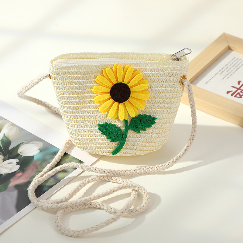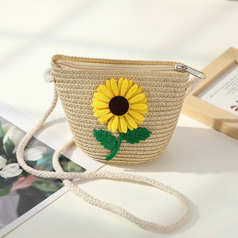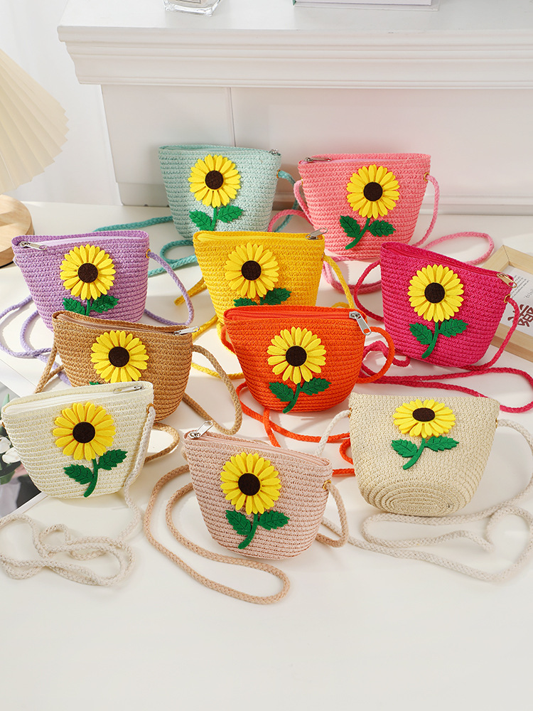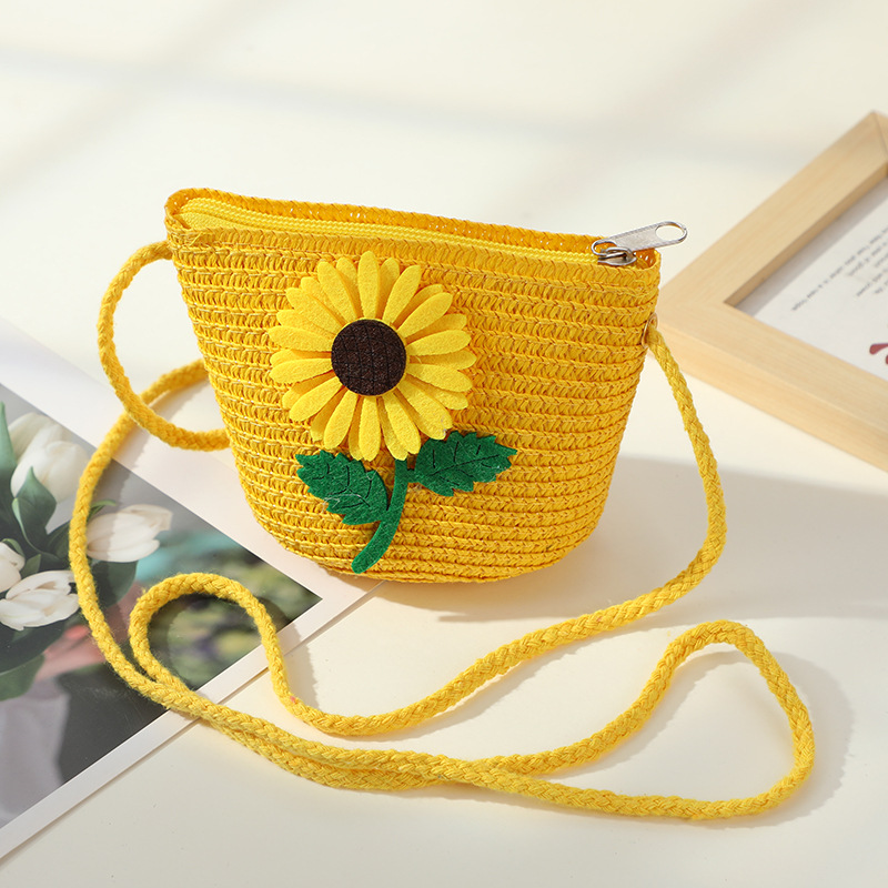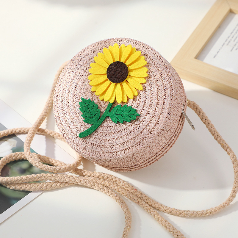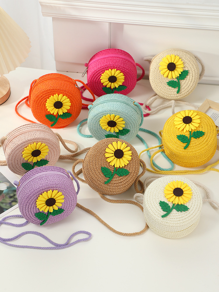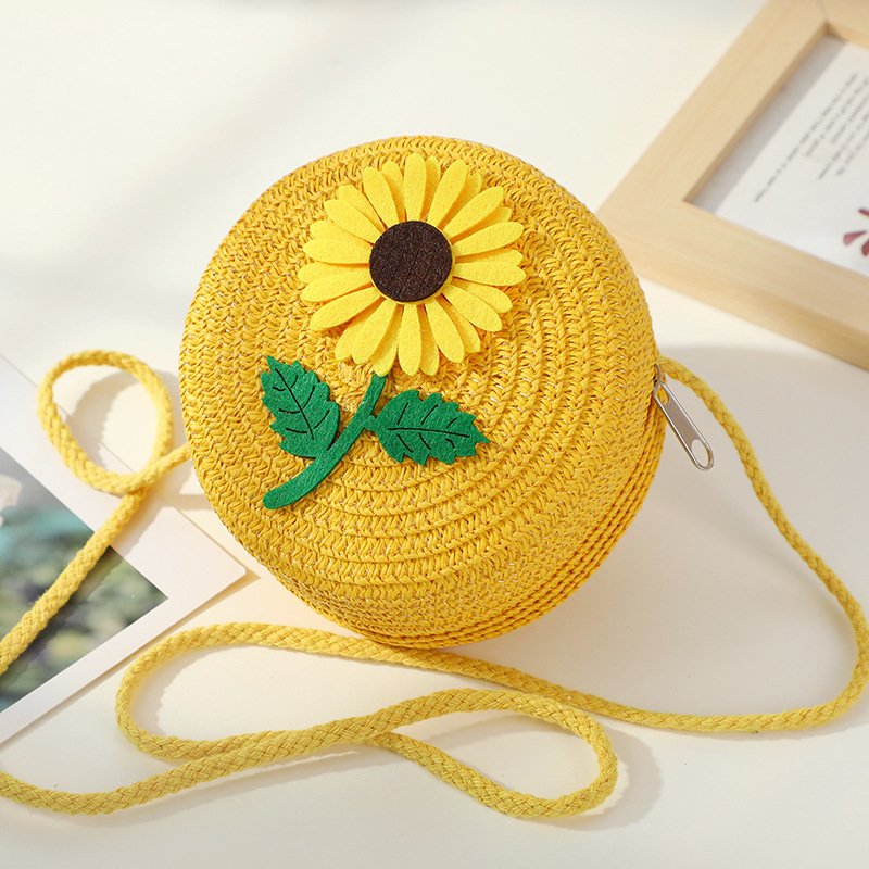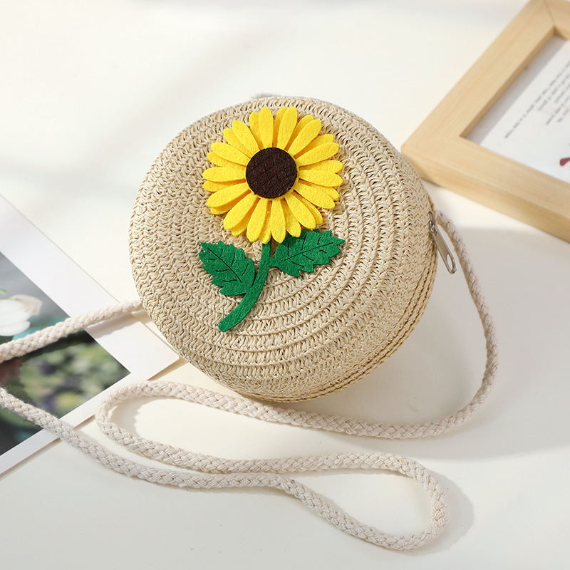 • 노란 해바라기 작은 소녀 작은 둥근 가방