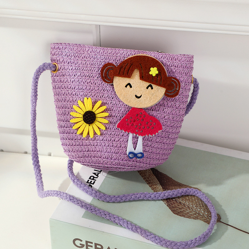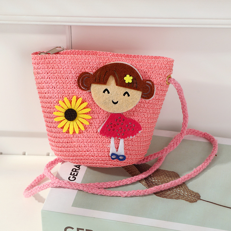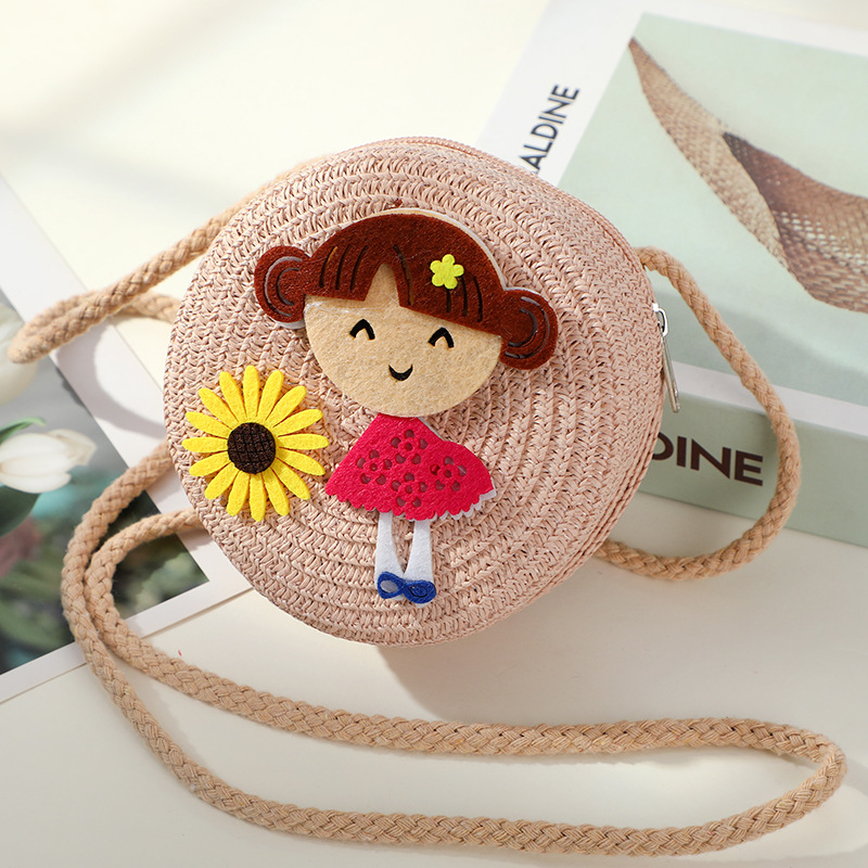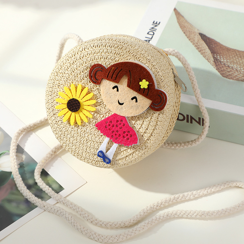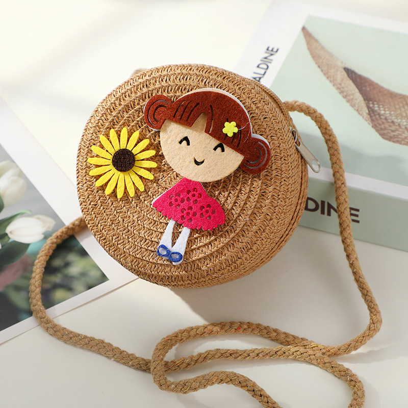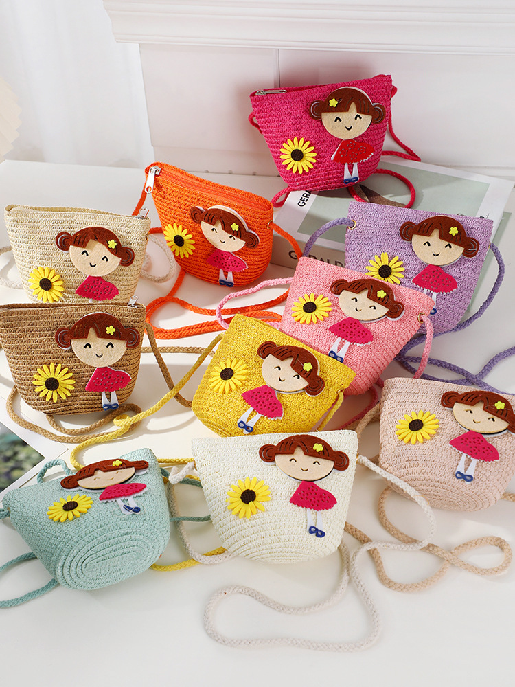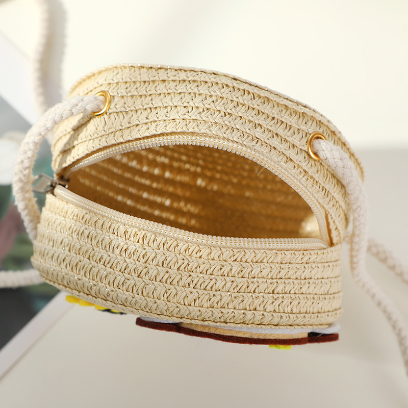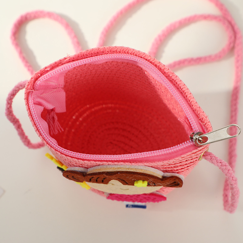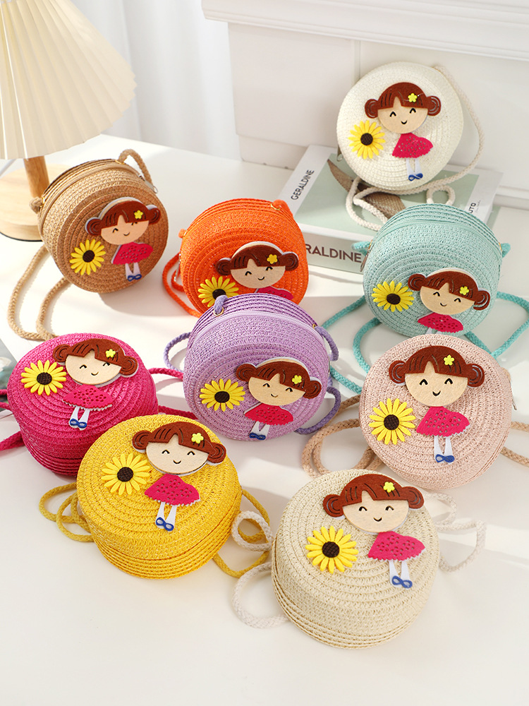 어린 소녀 해변 밀짚 가방 짠 가방 2025 새로운 어린이 가방 여성 귀여운 크로스 바디 가방 밀짚 가방 미니스토어 가기