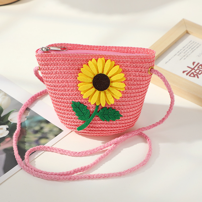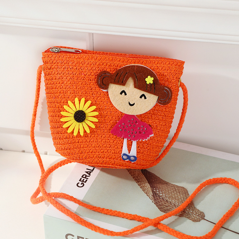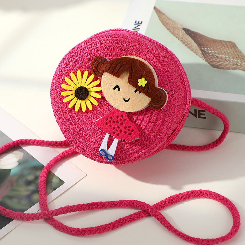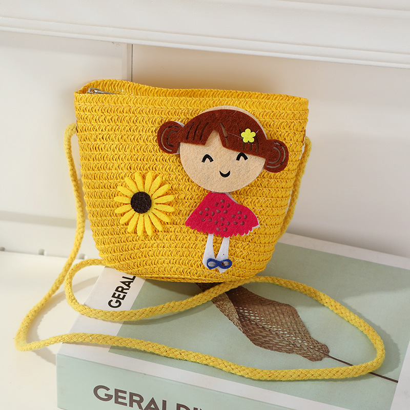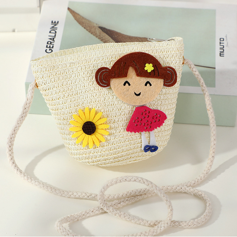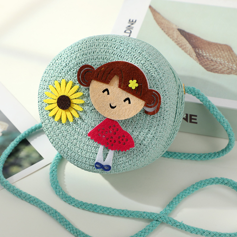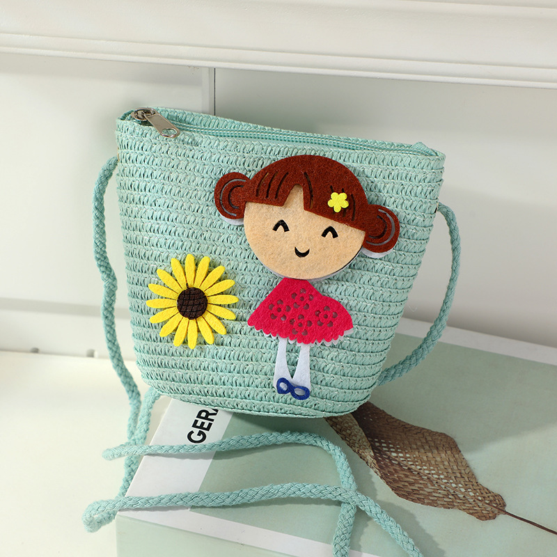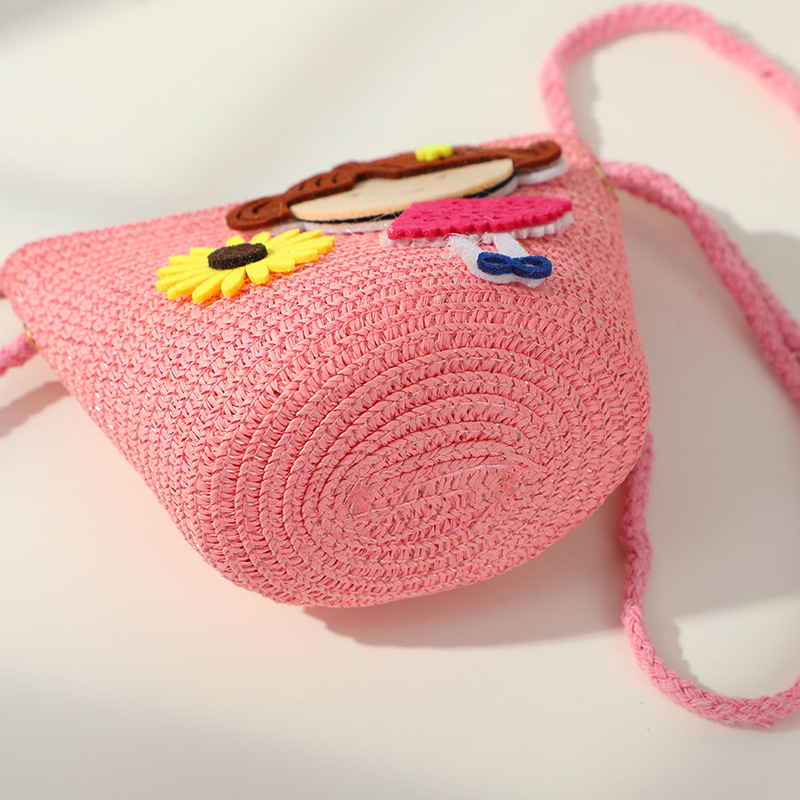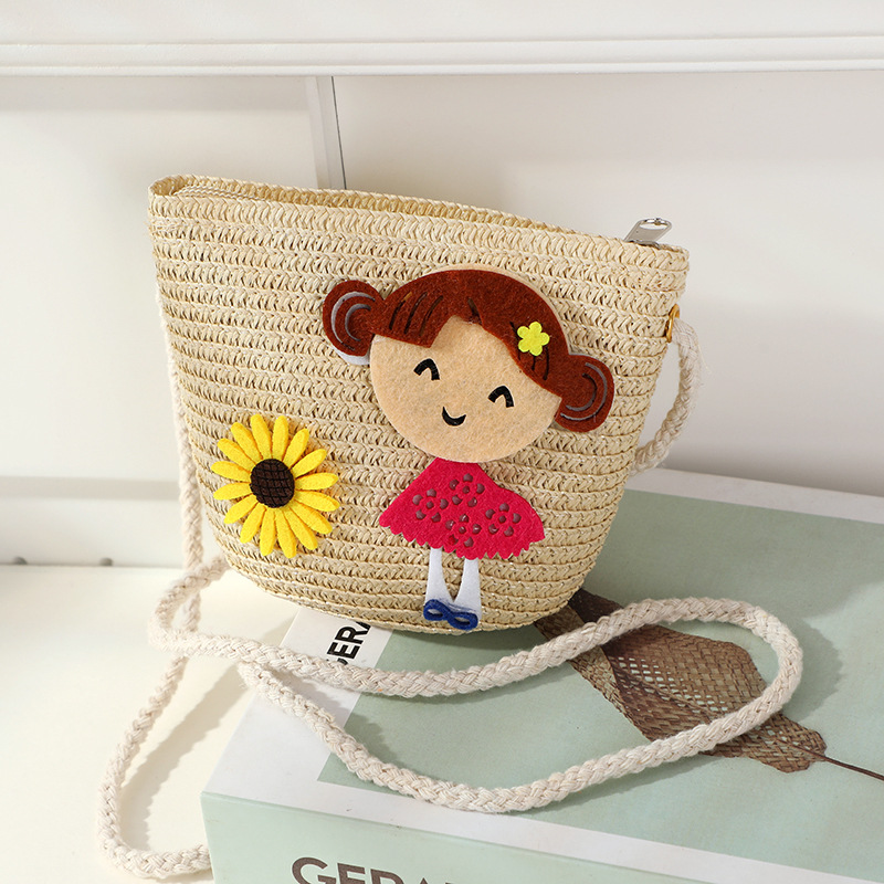 어린 소녀 해변 밀짚 가방 짠 가방 2025 새로운 어린이 가방 여성 귀여운 크로스 바디 가방 밀짚 가방 미니스토어 가기