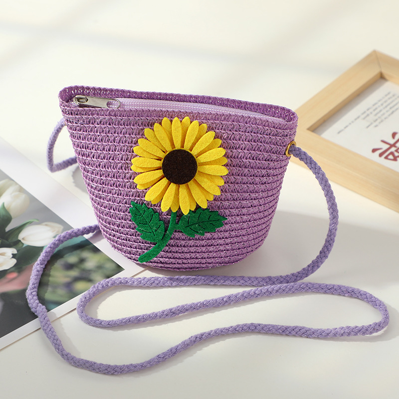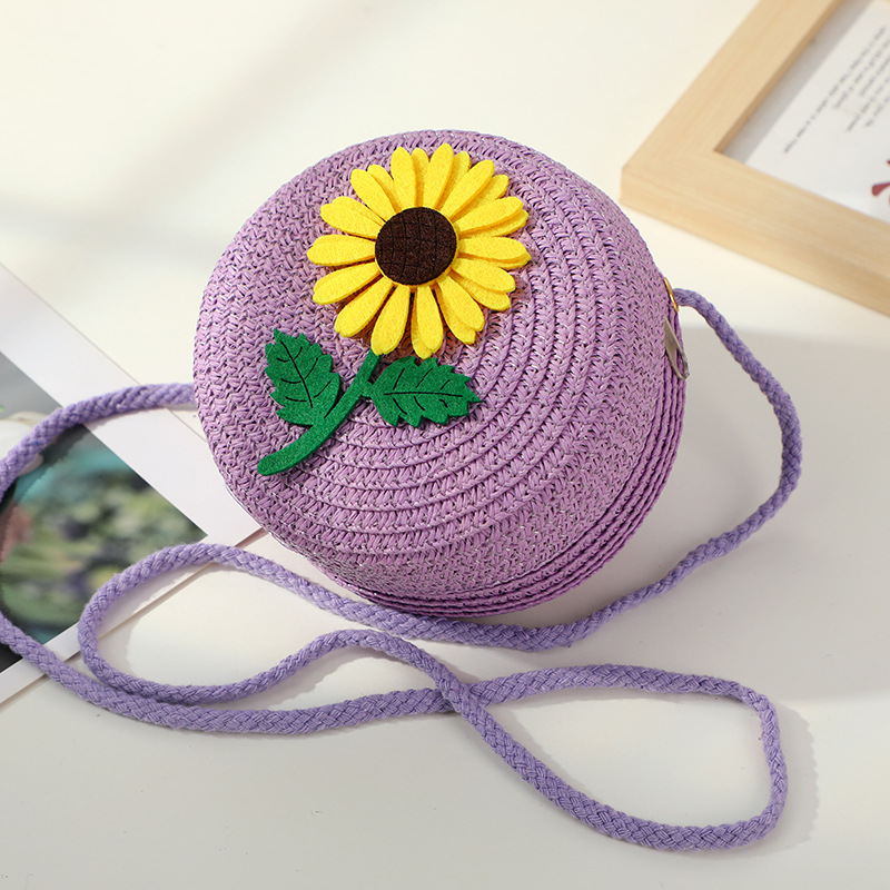 • 보라색 해바라기 작은 소녀 작은 둥근 가방