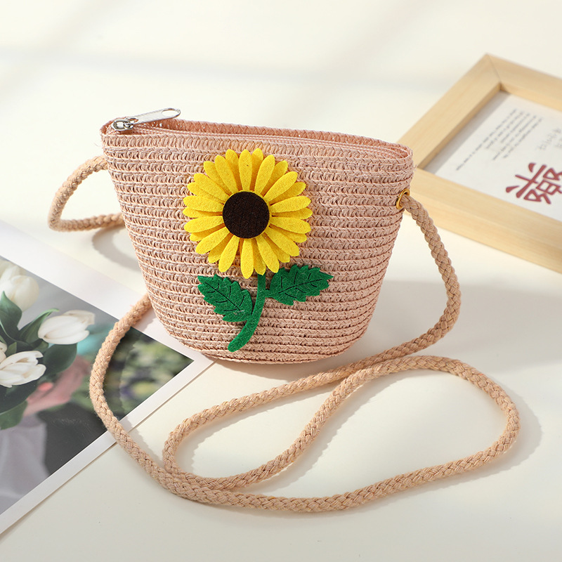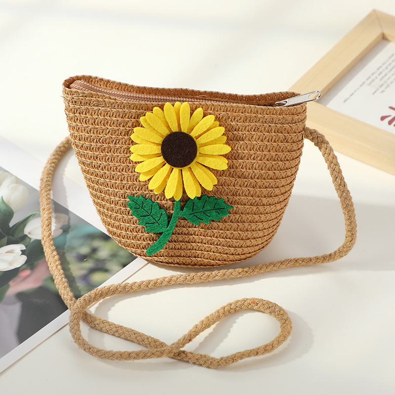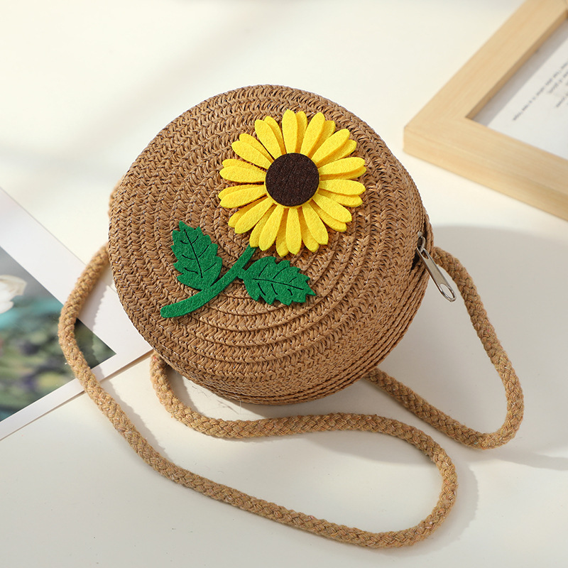 • 다크 브라운 해바라기 작은 소녀 라운드 가방