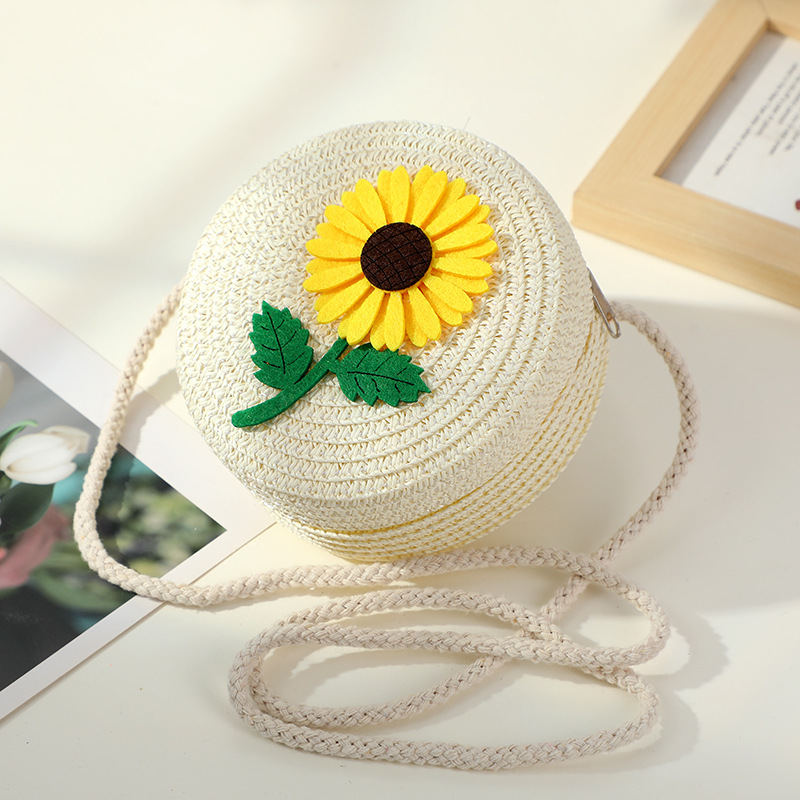 • 흰색 해바라기 작은 소녀 작은 둥근 가방