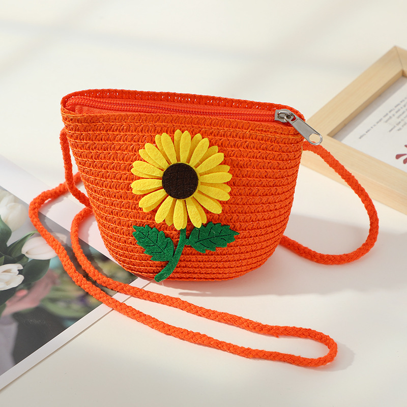 • 오렌지 곡선 막대 더블 잎 해바라기 작은 둥근 가방