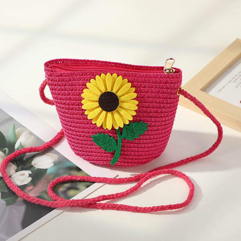 • 장미 붉은 해바라기 어린 소녀 작은 둥근 가방