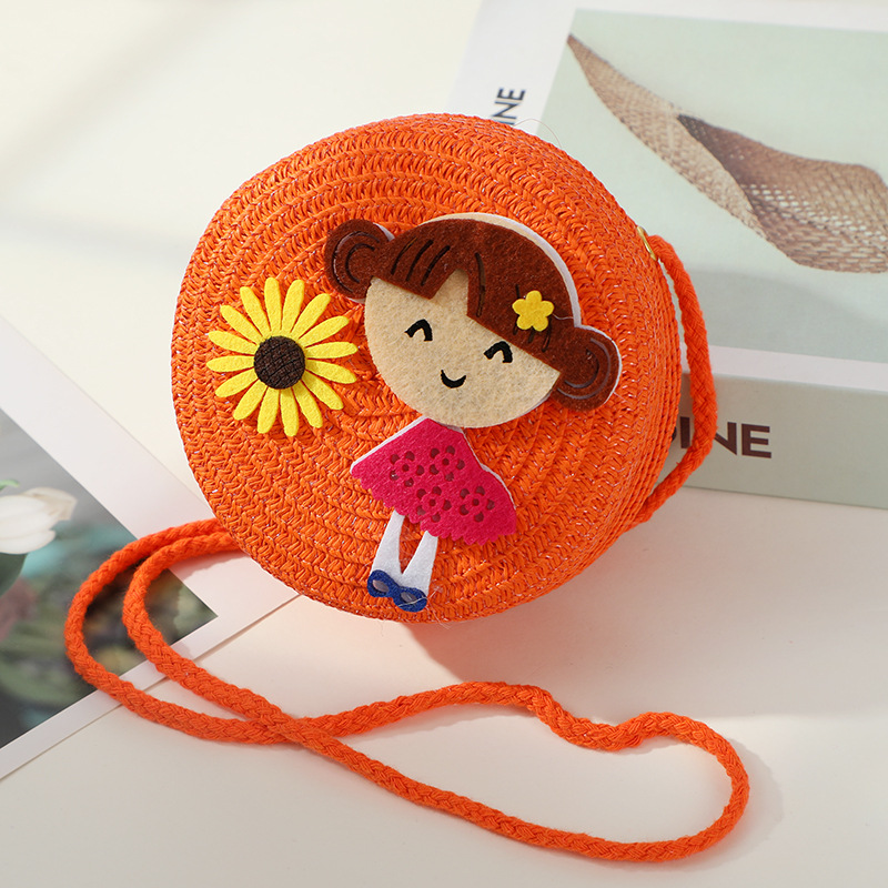 • 오렌지 해바라기 작은 소녀 작은 둥근 가방