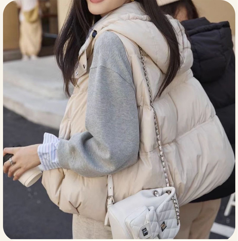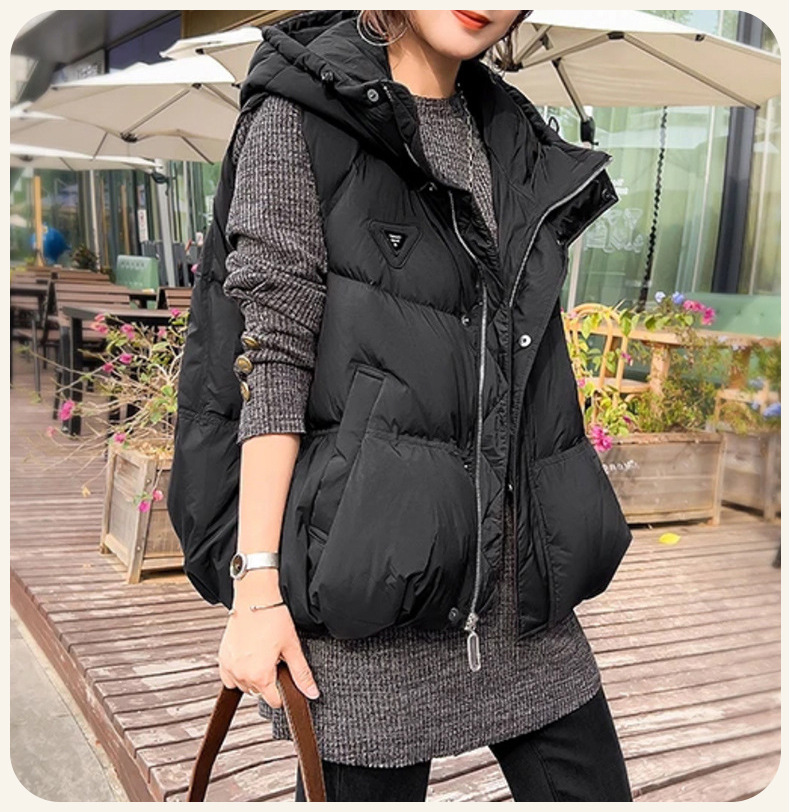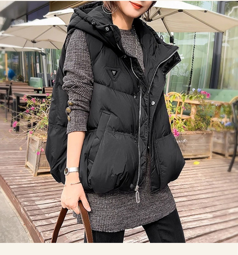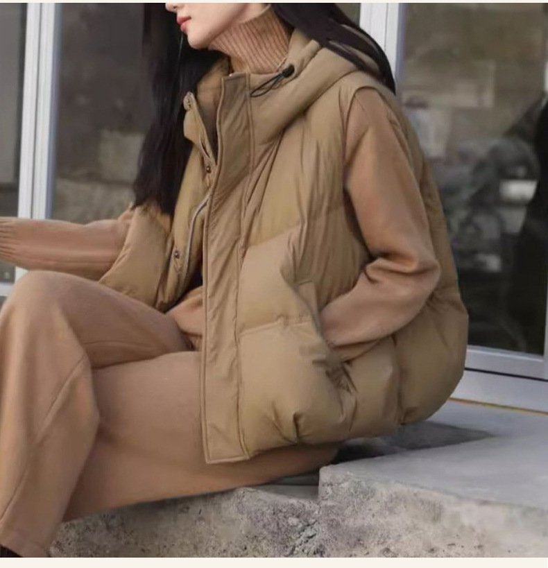 여성용 다운 조끼, 여성용 고급 새 스타일, 오리털 후드 따뜻한 조끼, 평허스토어 가기