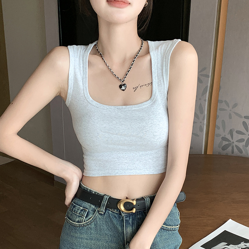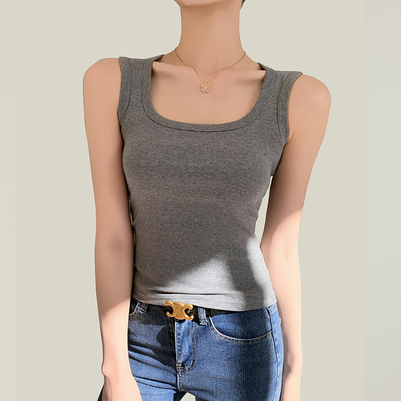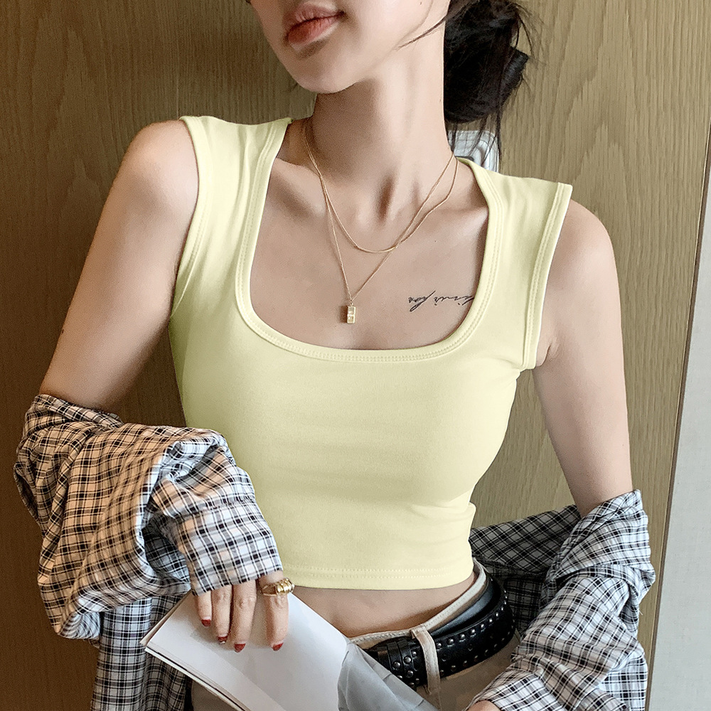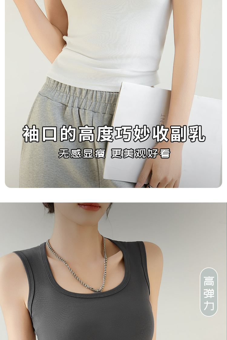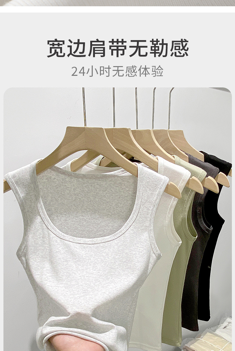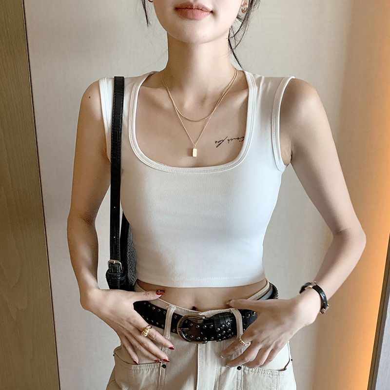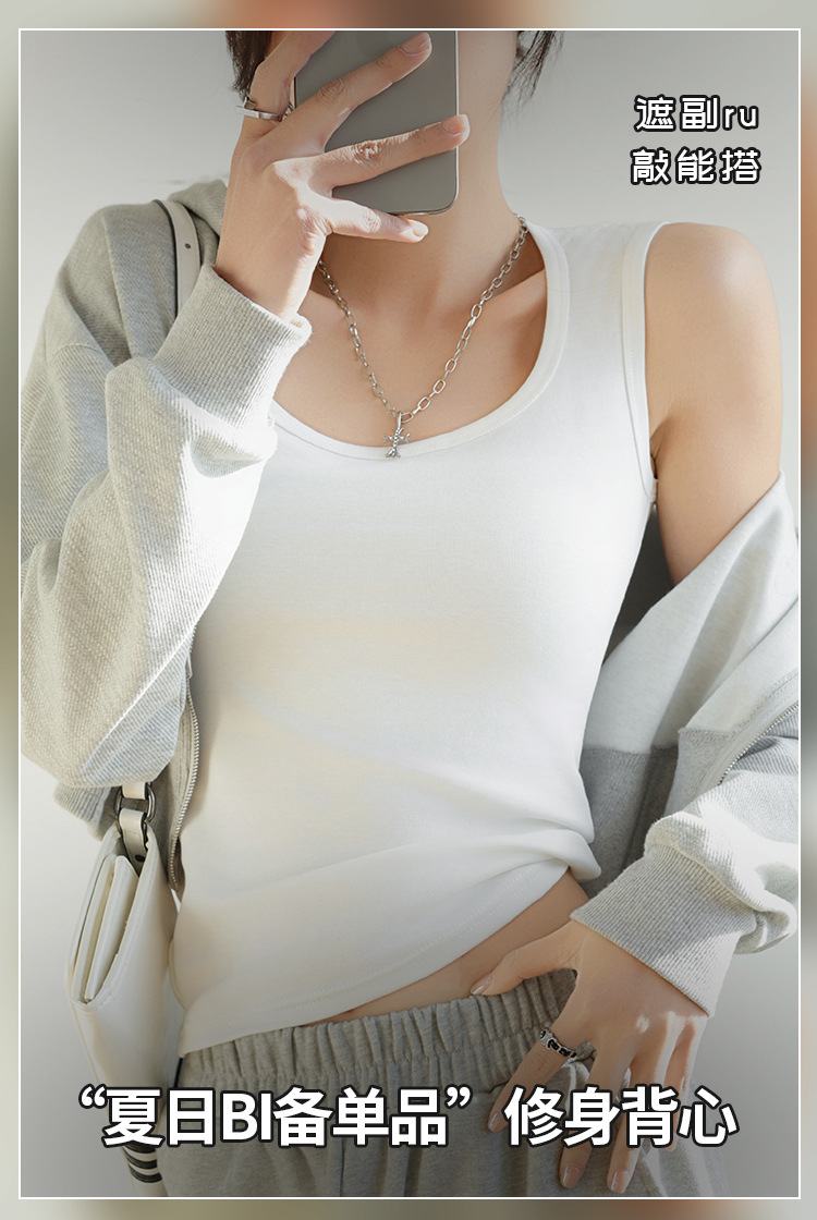 H349 Cotton Camisole Women's Summer 새로운 I 자형 내부 와이드 숄더 커버 파라-가슴 슬림 핏 화이트 보텀 탑